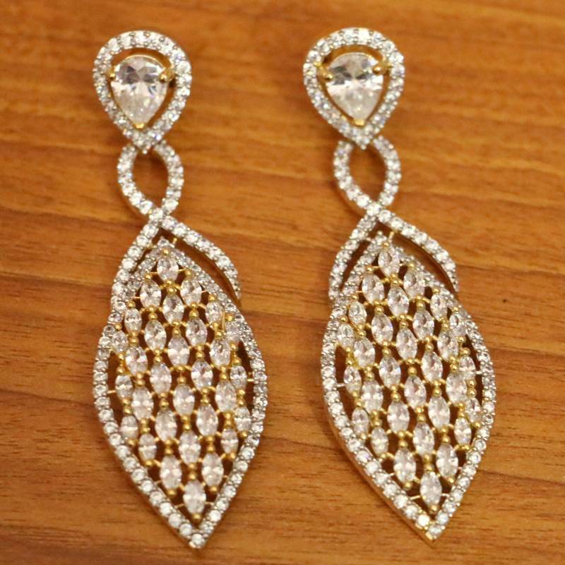 These Leaf Pattern Earrings Are Handcrafted In Silver Alloy With Imitation Cz Stone Of Very Fine Quality. These Artistic Yet Modern Earrings Are Plated With High Quality Nickel Free Gold Rhodium. The Earrings Are Very Light In Weight.