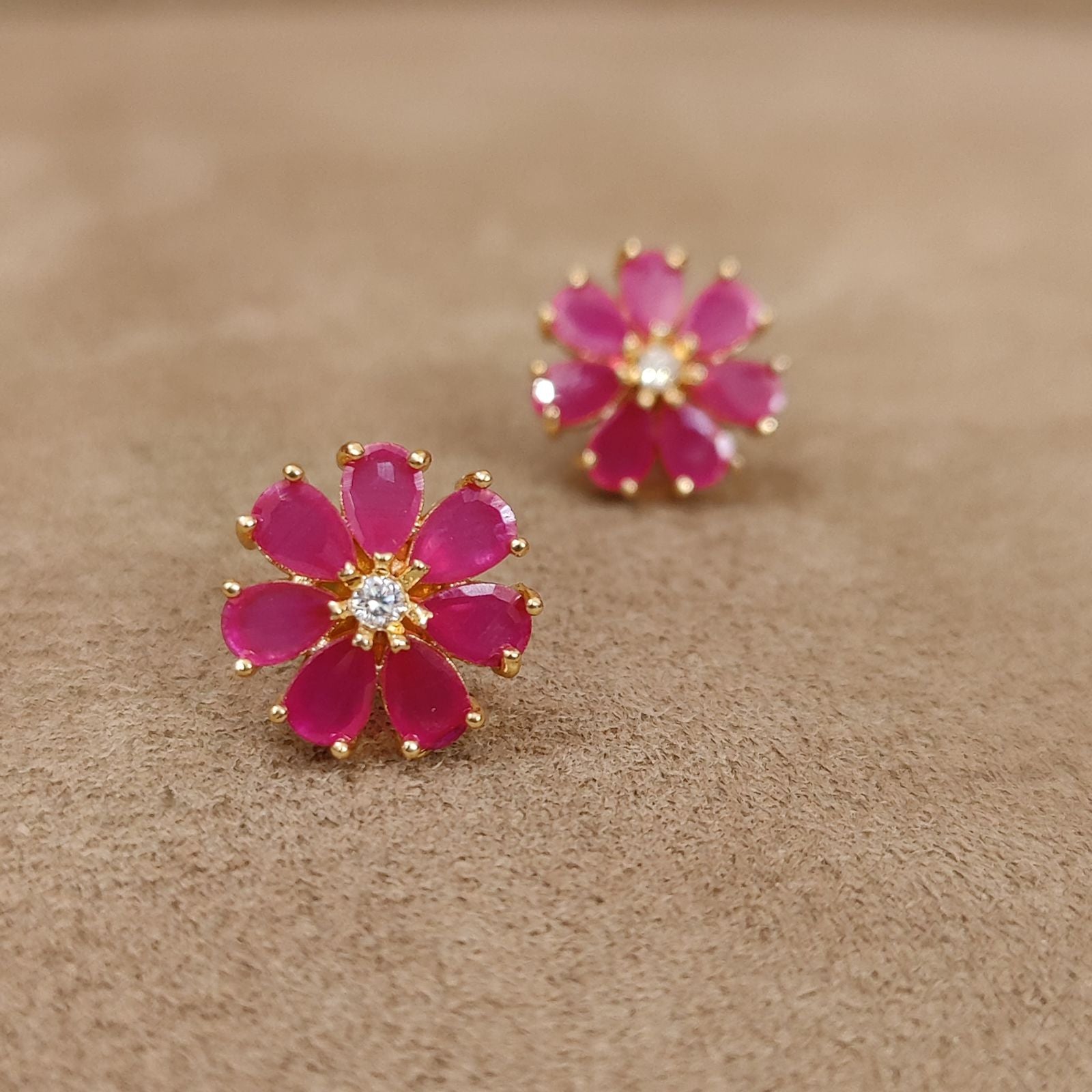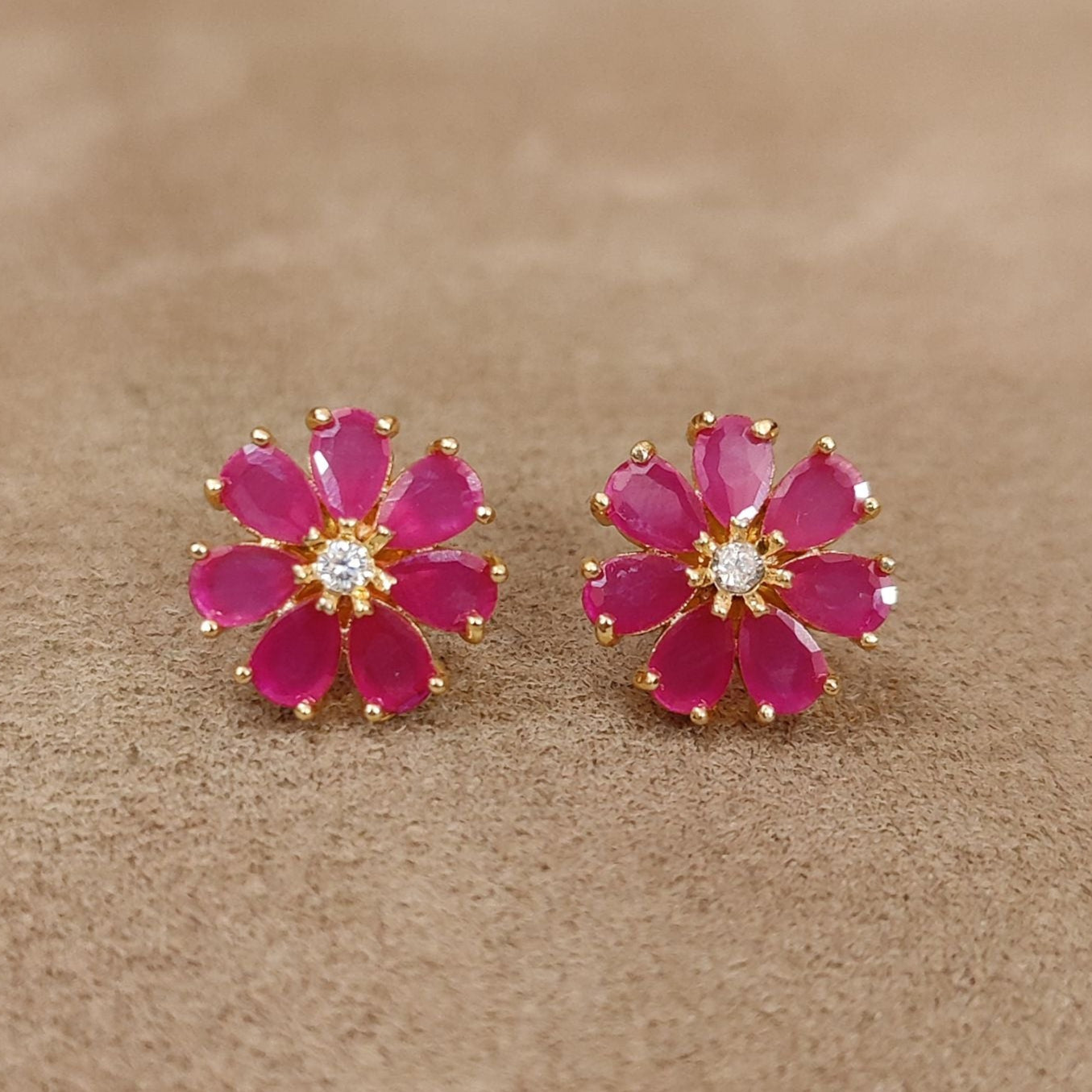 RUBY FLOWER PATTERN GOLD PLATED EARRINGS