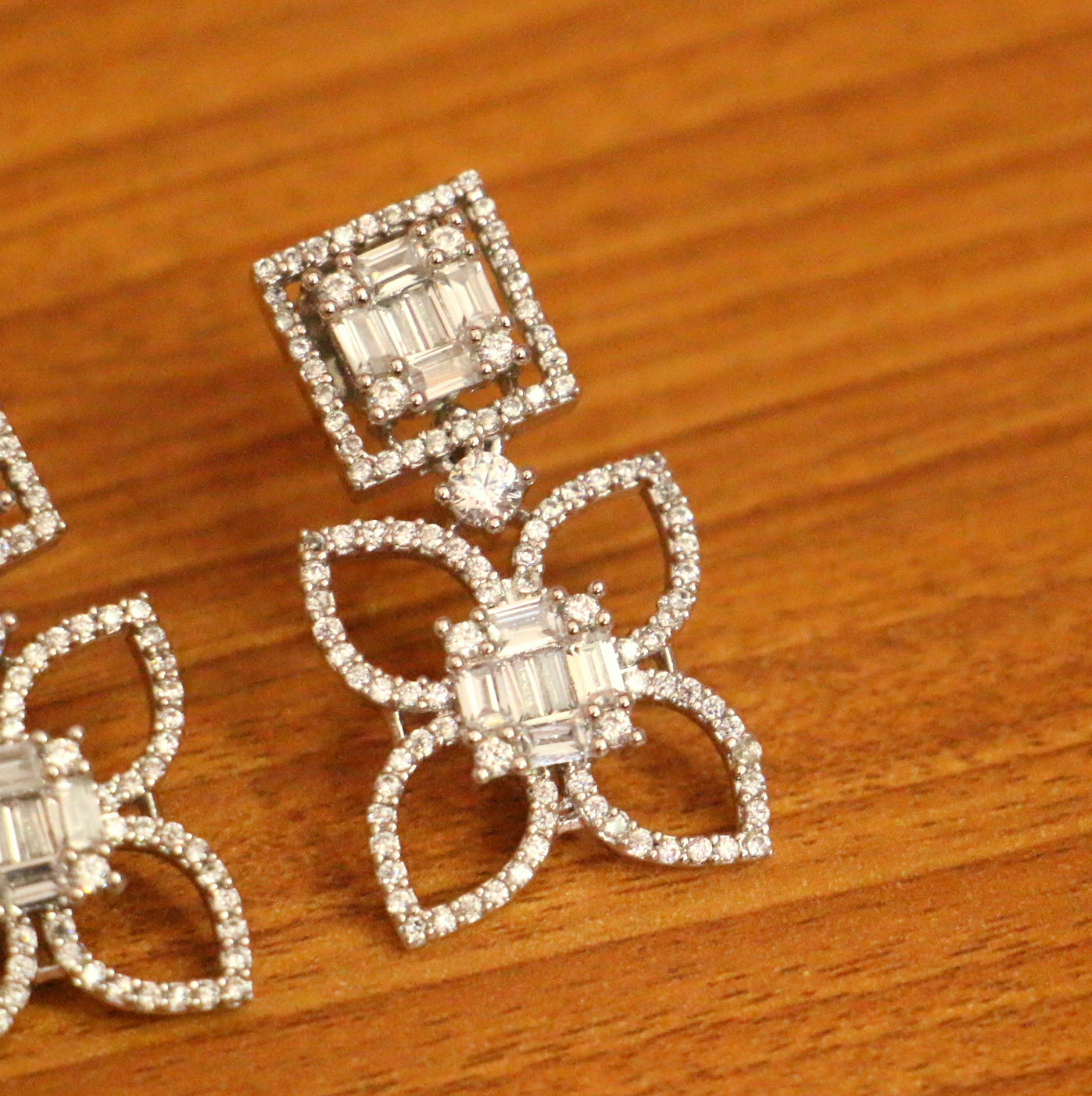 CZ STUDDED WHITE RHODIUM PLATED DANGLERS