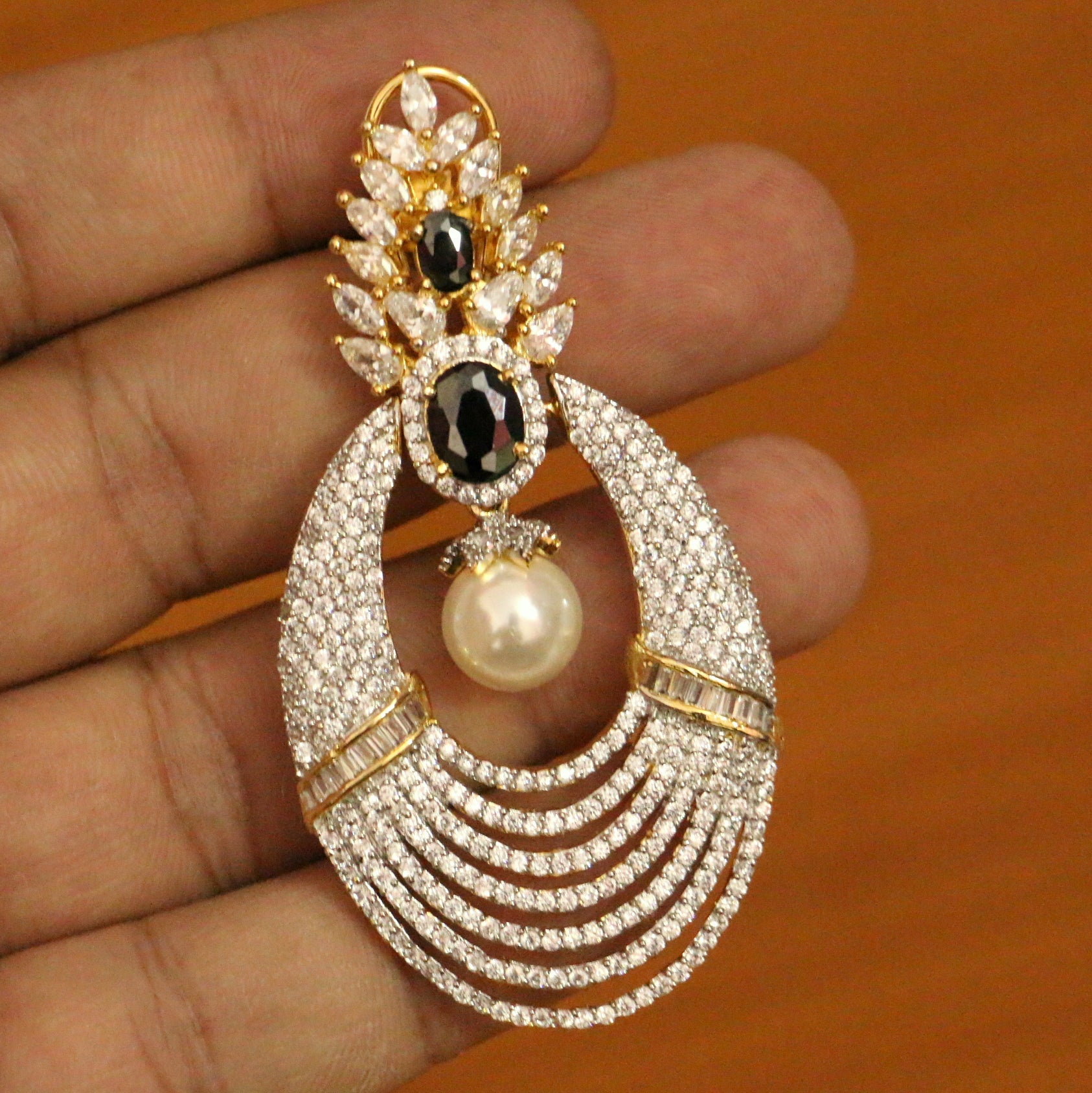 Black Diamond Look Pearl Danglers