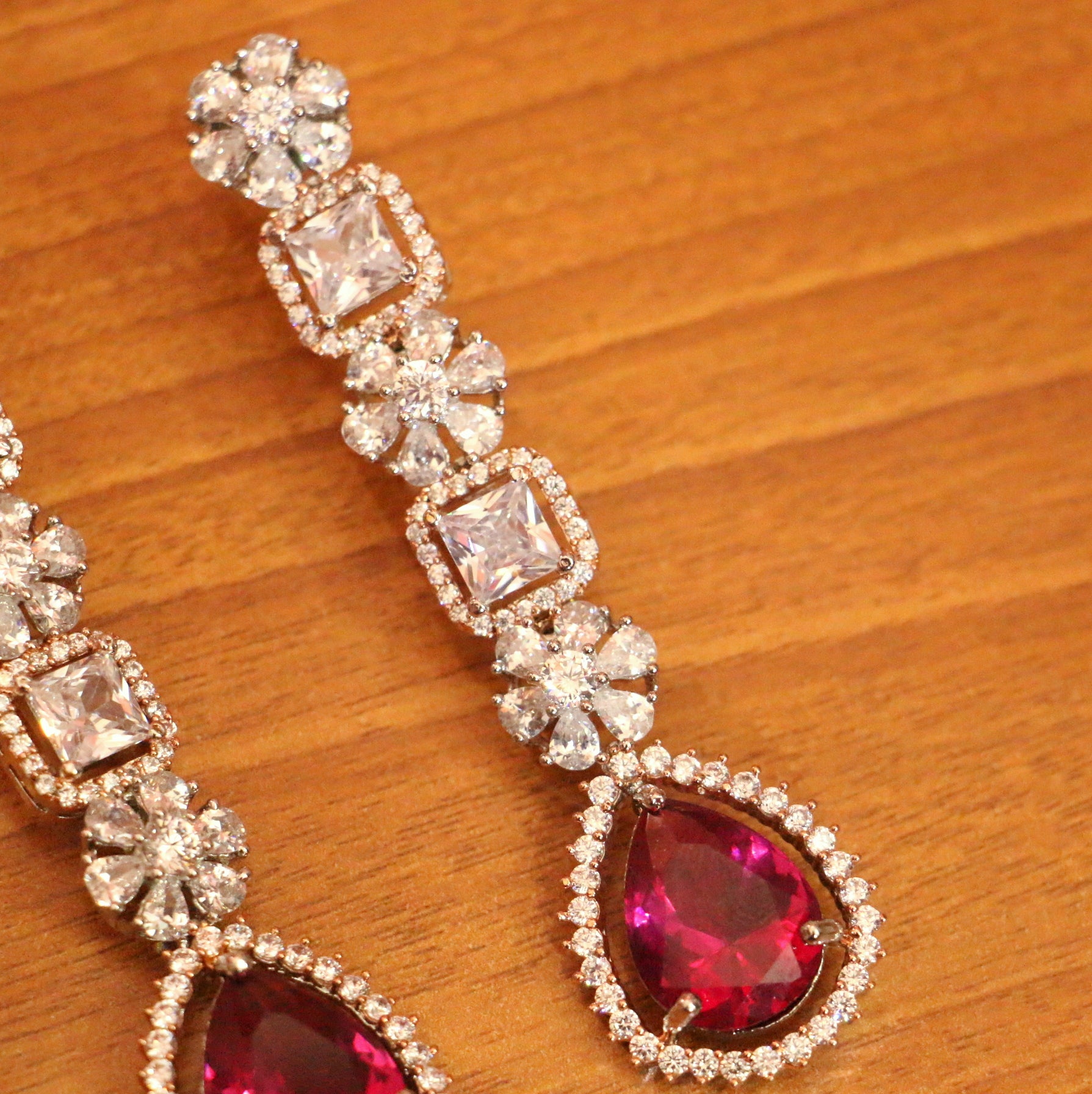 DIAMOND LOOK SILVER PLATED RUBY DANGLERS