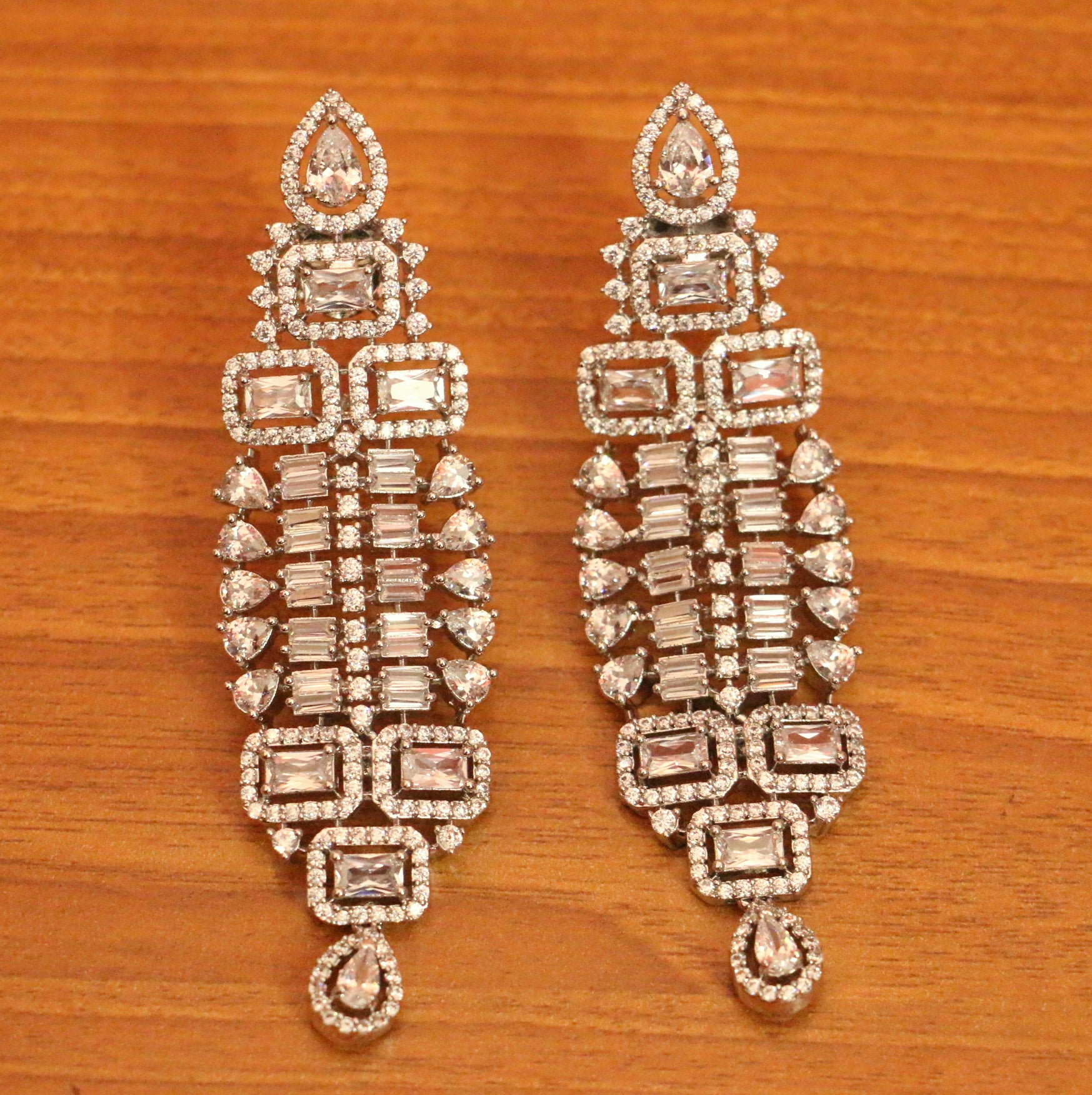 CZ STUDDED WHITE RHODIUM DIAMOND LOOK DANGLERS