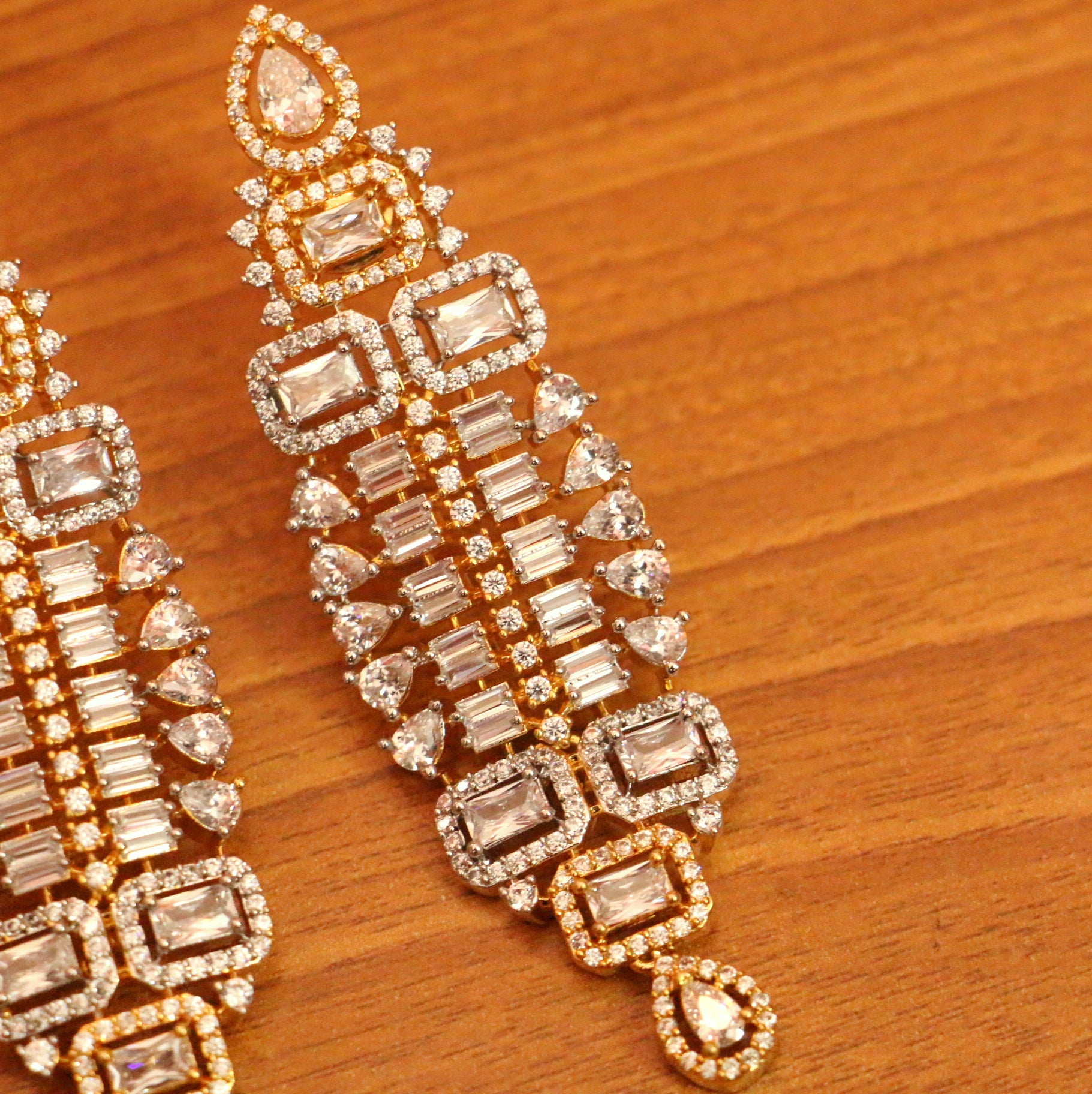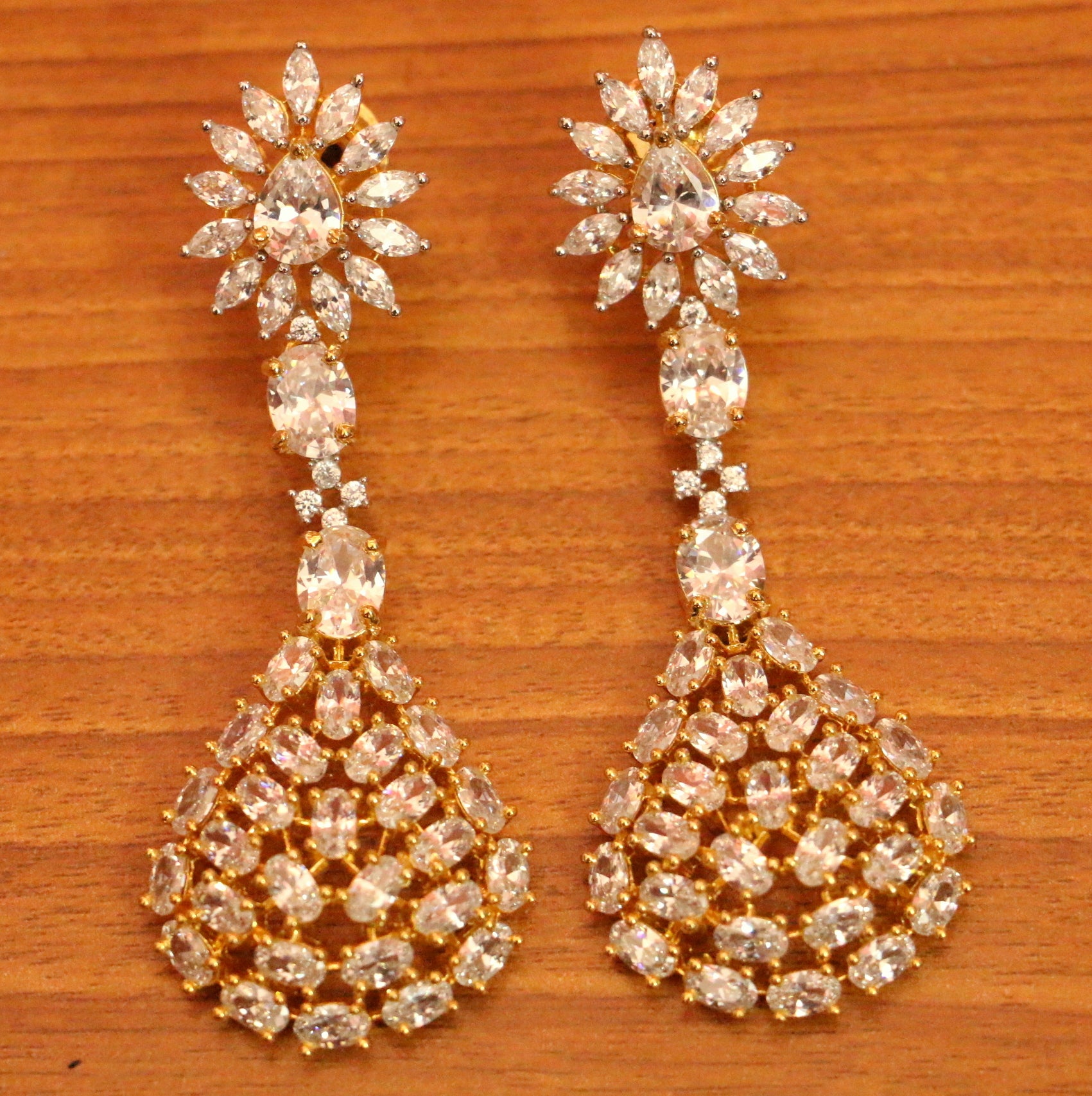 DIAMOND LOOK GOLD PLATED CZ DANGLERS