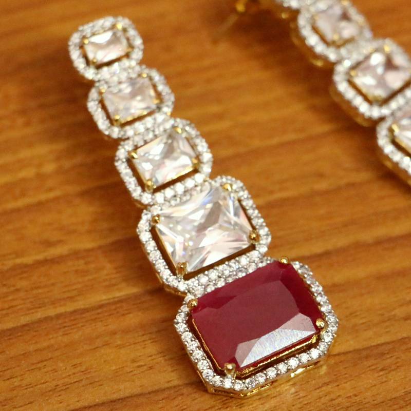 RED STONE & CZ STUDDED DANGLER DROPS