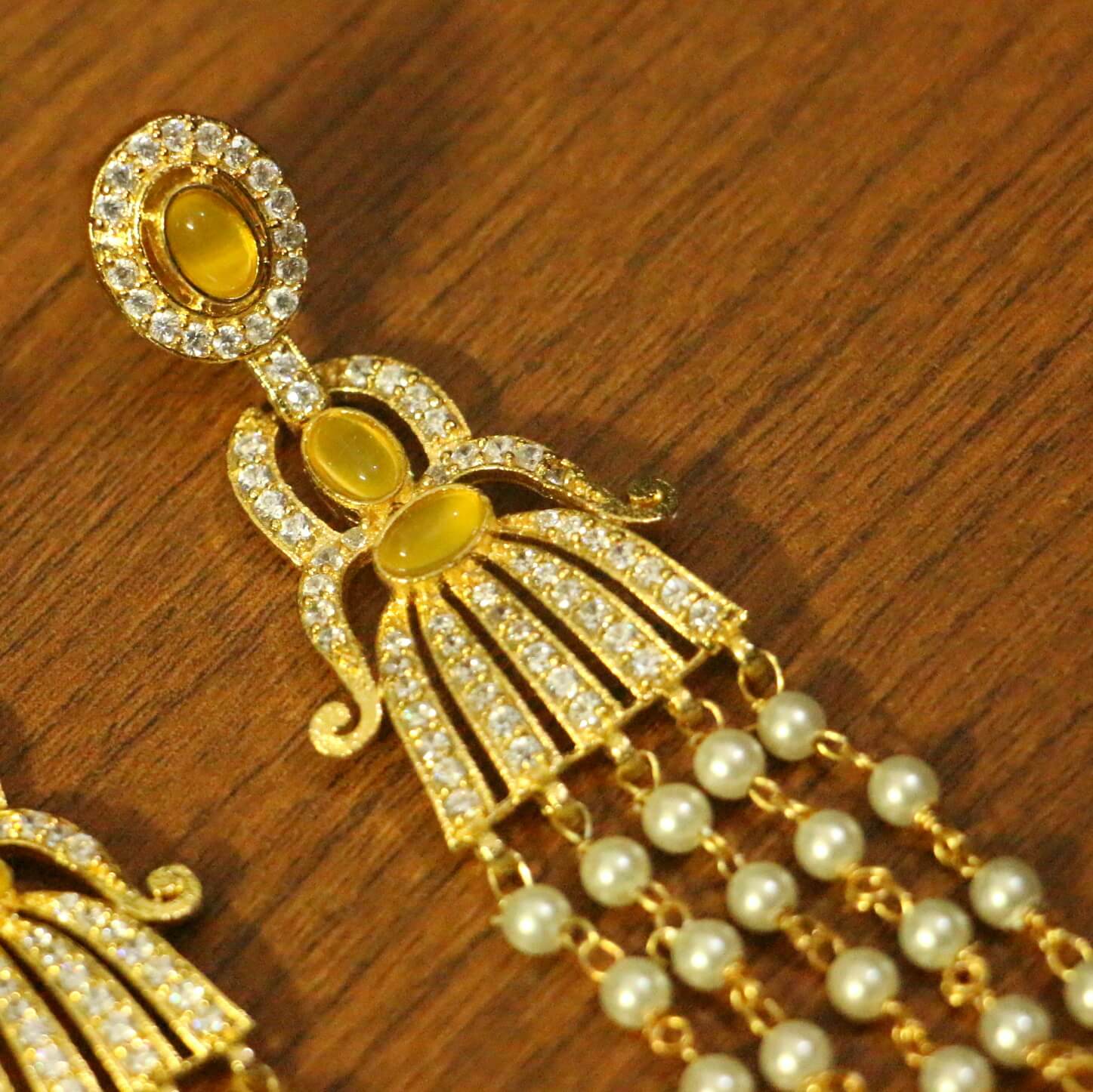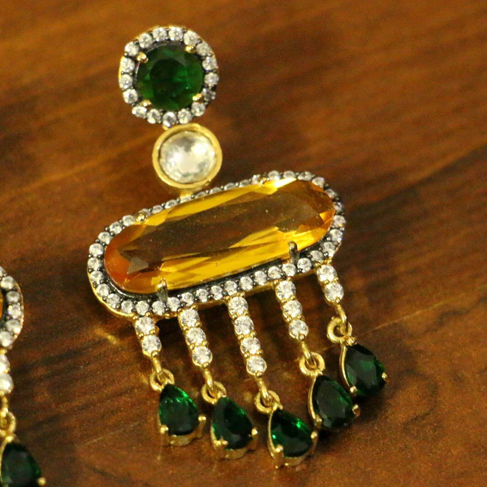 Champagne Stone & Cz Studded Diamond Look Danglers