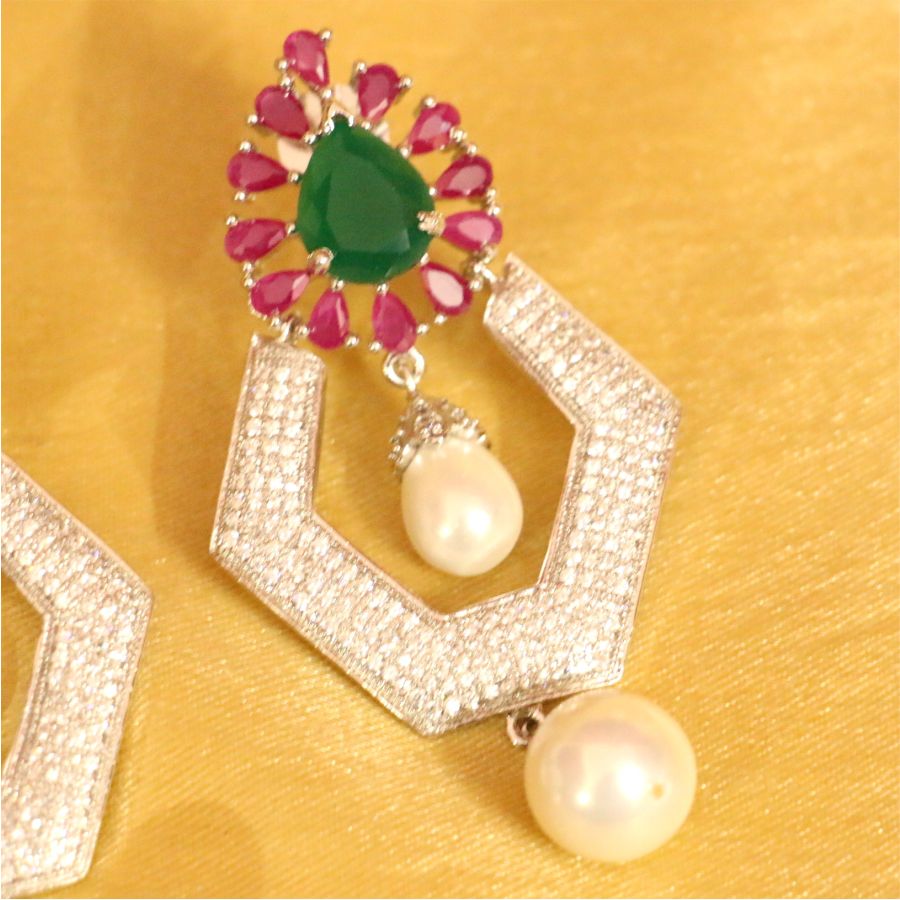 Diamond Look Ruby & Emerald Earrings