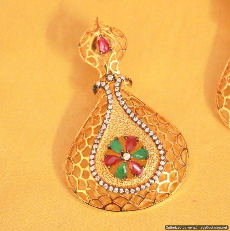 Diamond Look Leaf Pattern Ruby Danglers
