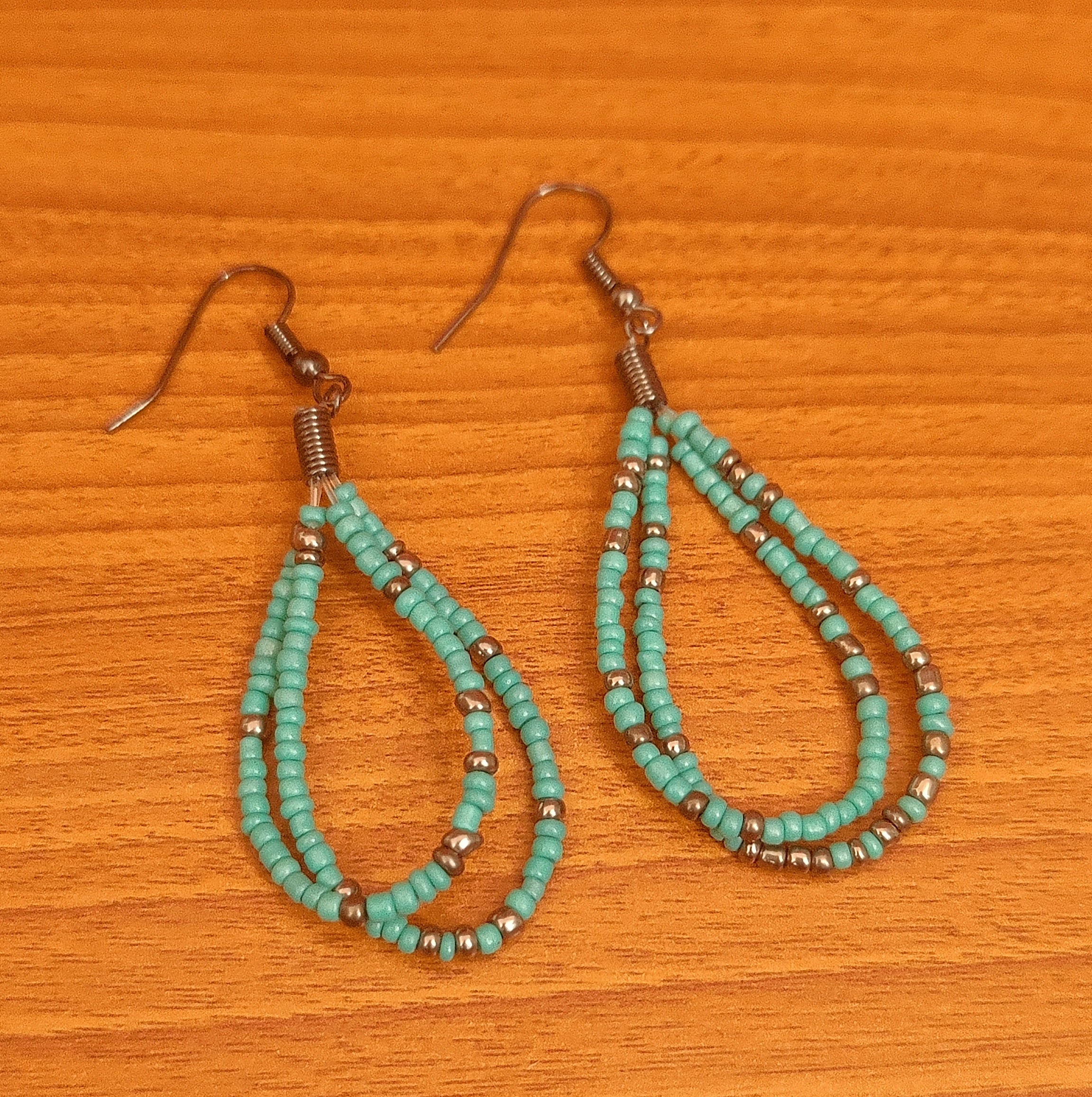 These beautiful hoops are handcrafted in copper alloy with imitation semi precious crystal beads work of very fine quality. these artistic yet modern earrings are plated with high quality black silver rhodium. the earrings are very light in weight.