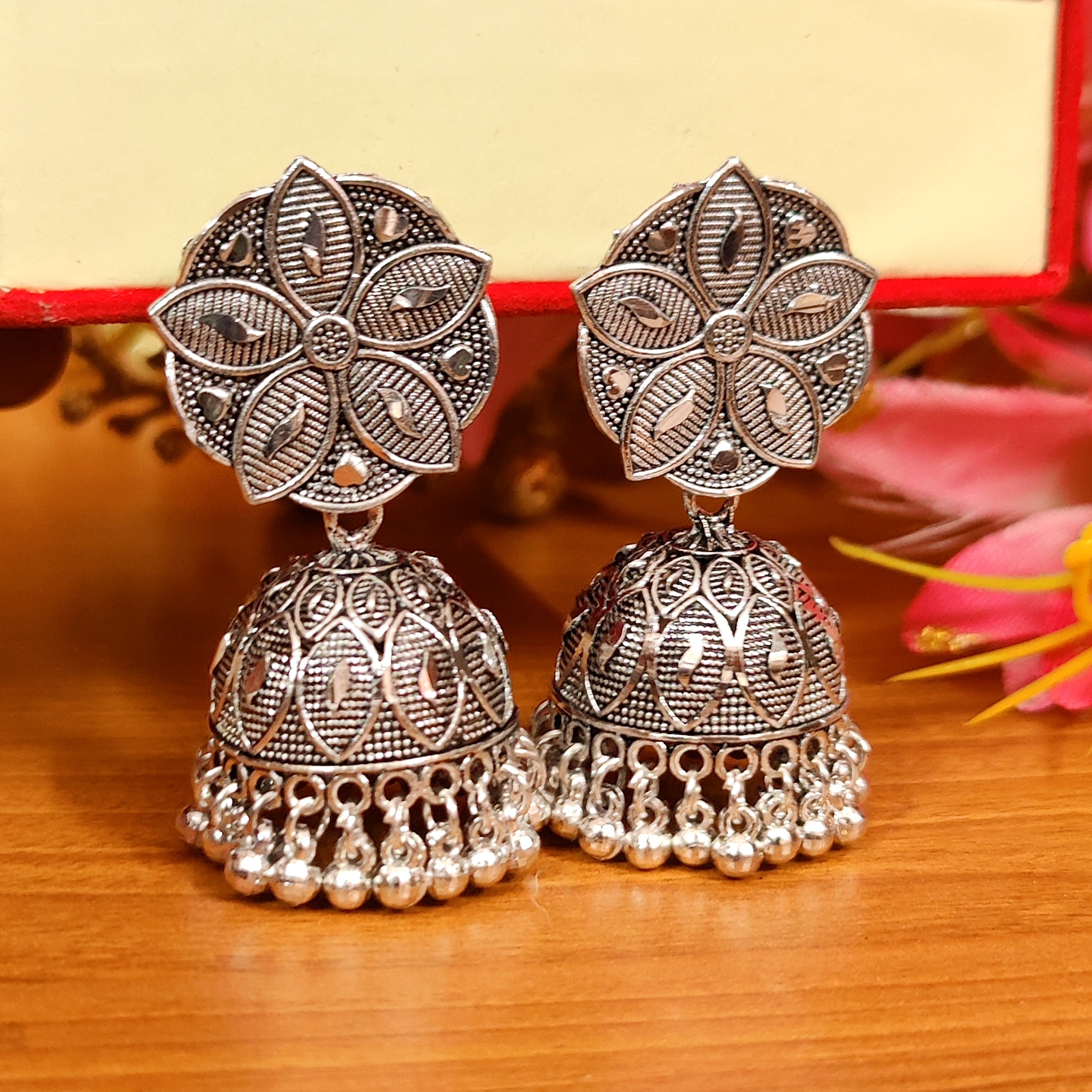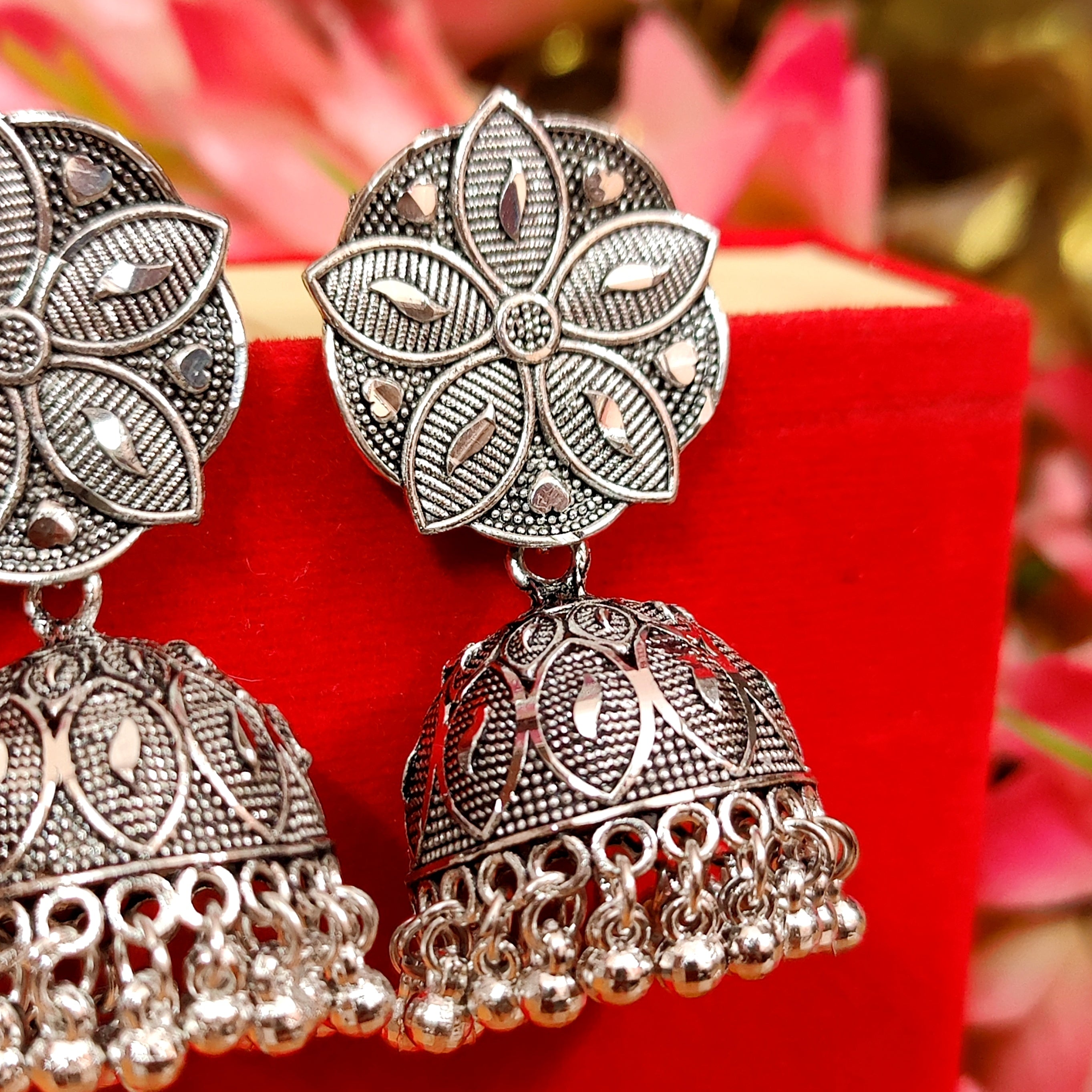 SILVER PLATED LIGHT WEIGHT FLOWER JHUMKA'S