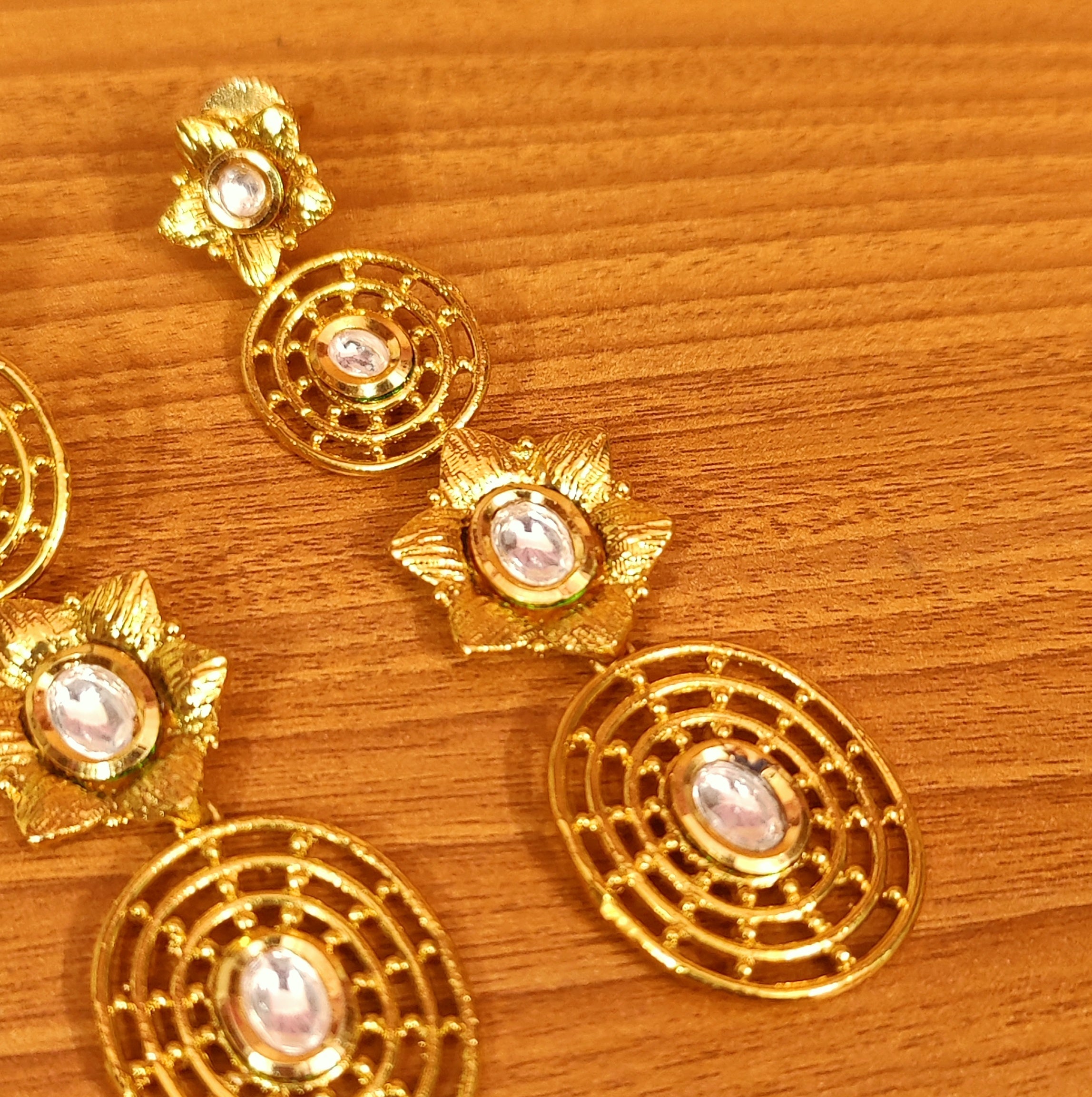 GOLD LOOK FLOWER PATTERN KUNDAN LOOK EARIINGS