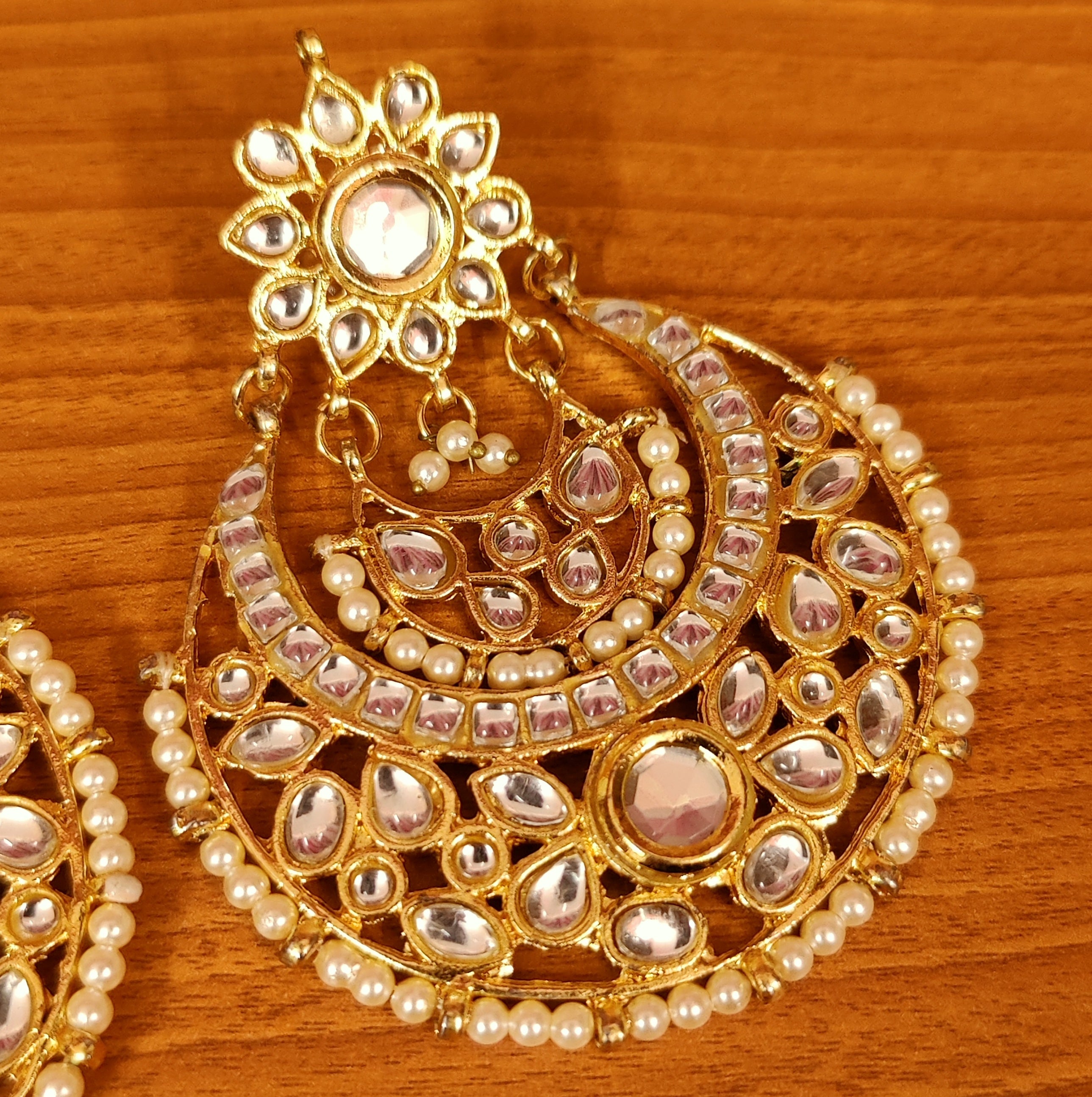 KUNDAN POLKI & PEARL GOLD PLATED CHAANDBAALI