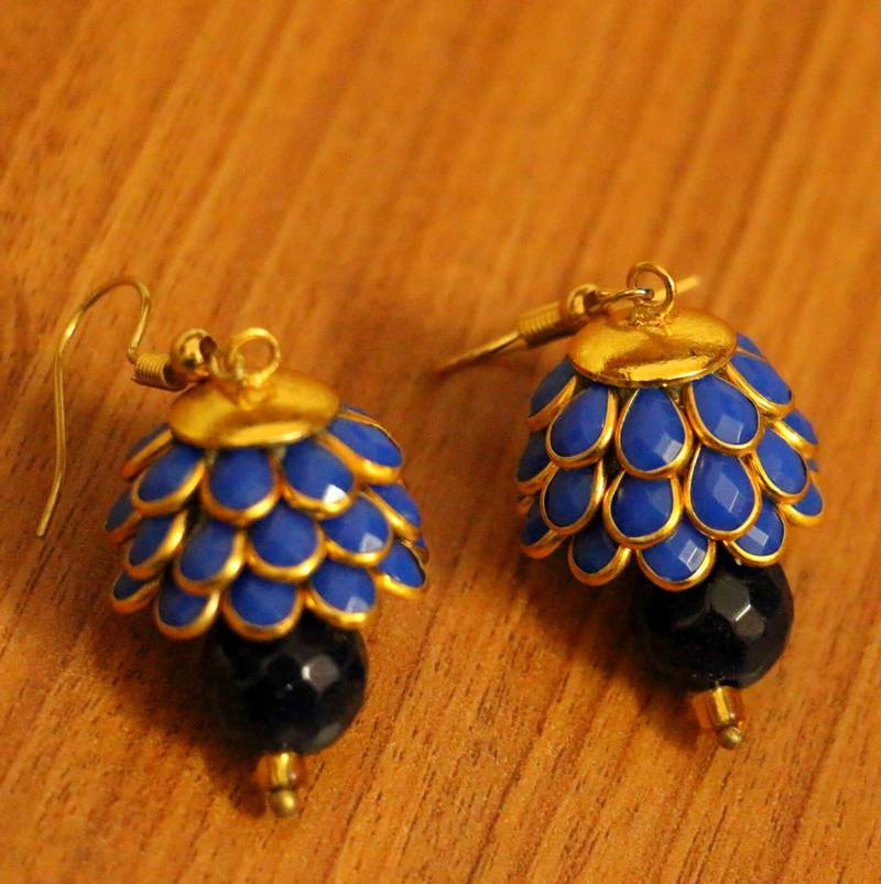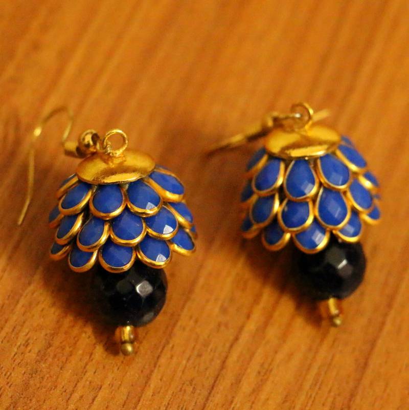 These beautiful earrings are handcrafted in copper alloy with imitation polki & onyx work of very fine quality. These earrings are coated with 18 kt gold polish which give them a unique look . An absolutely stunning piece to own and are very light in weight.