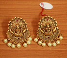 These goddes lakshmi pattern earrings are handcrafted in copper alloy with imitation pearls & polki work of very fine quality. These artistic yet modern earrings are plated with high quality 18kt gold. The earrings are very light in weight.