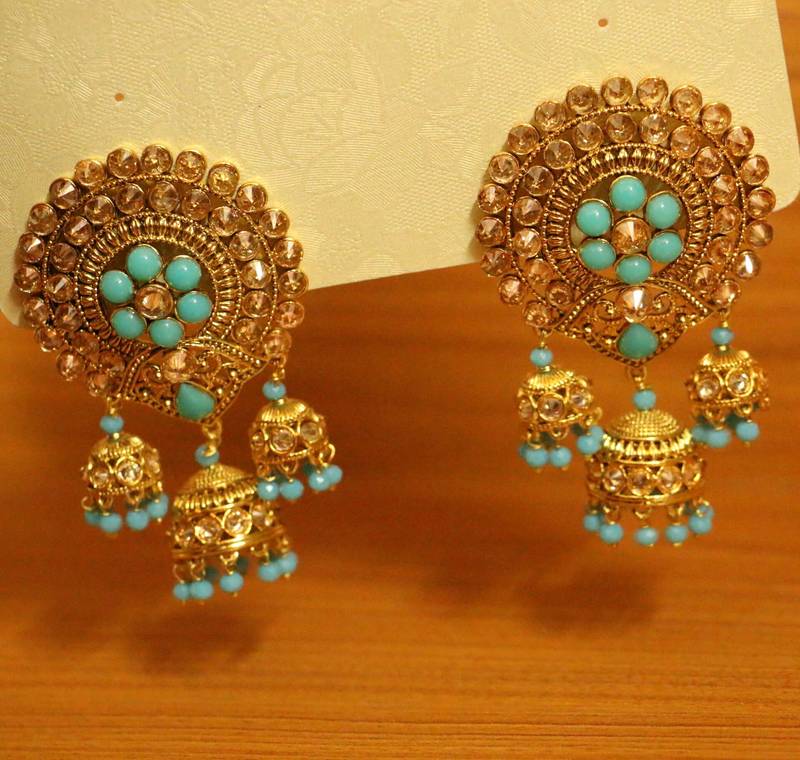 These beautiful earrings are handcrafted in copper alloy with imitation zircon & polki work of very fine quality. These earrings are coated with 18 kt gold polish which give them a unique look . An absolutely stunning piece to own and are very light in weight.