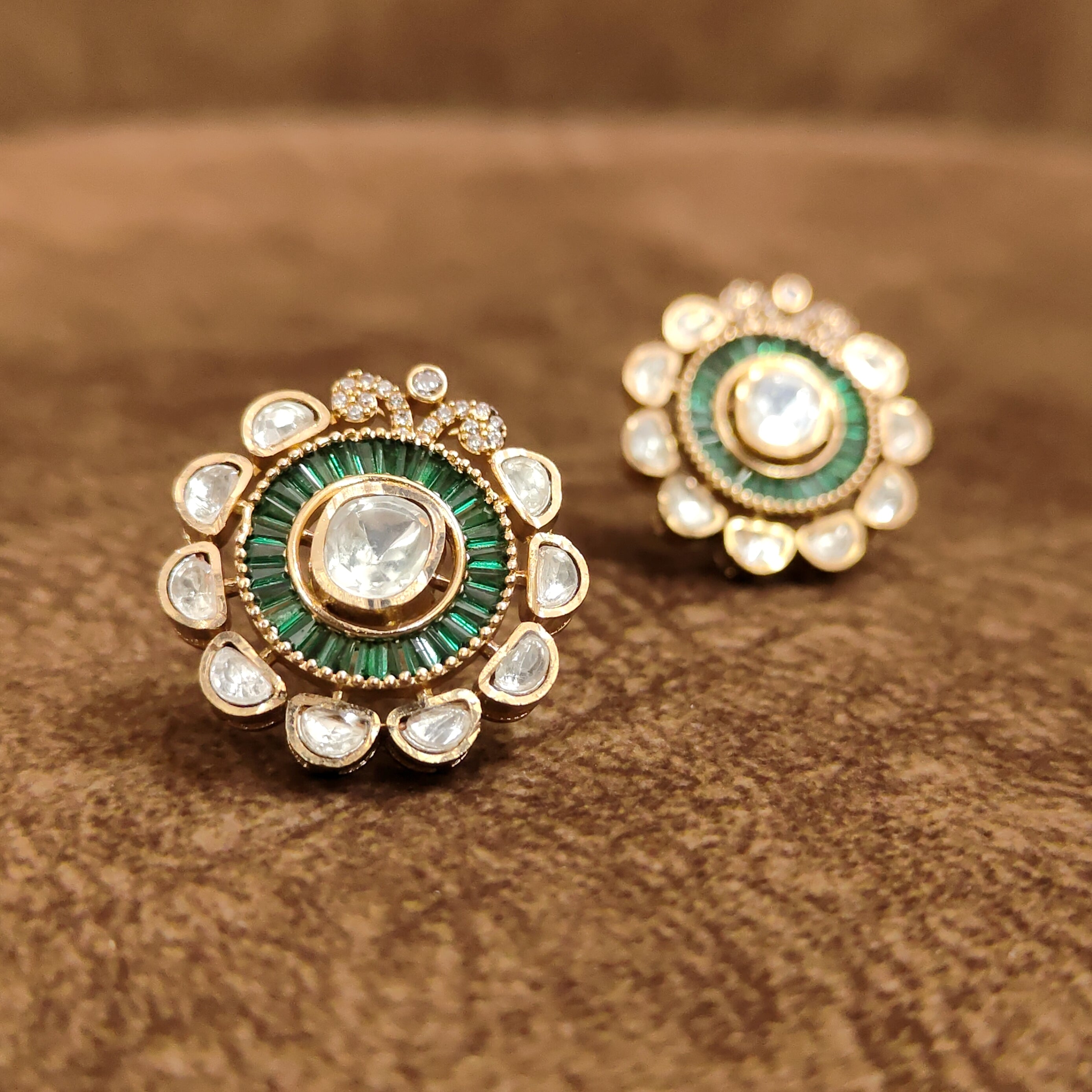 Emerald Green Kundan Polki Stud Earrings – Royal Designer Imitation Jewellery | Sanvi Jewels
