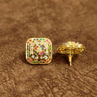 Royal Navratna Square Stud Earrings – Traditional Multicolor Designer Artificial Jewellery | Sanvi Jewels