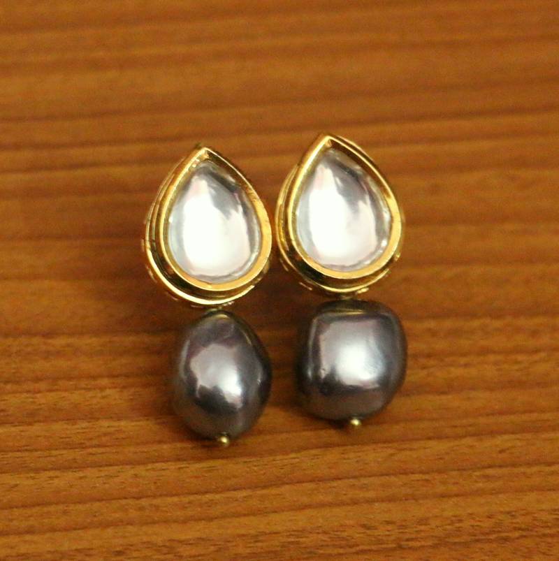 These Studs Are Handcrafted In Brass Alloy With Imitation Kundan Meenakari & Grey Pearl Of Very Fine Quality. These Artistic Yet Modern Studs Are Plated With High Quality Nickel Free Gold Rhodium. The Earrings Are Very Light In Weight.