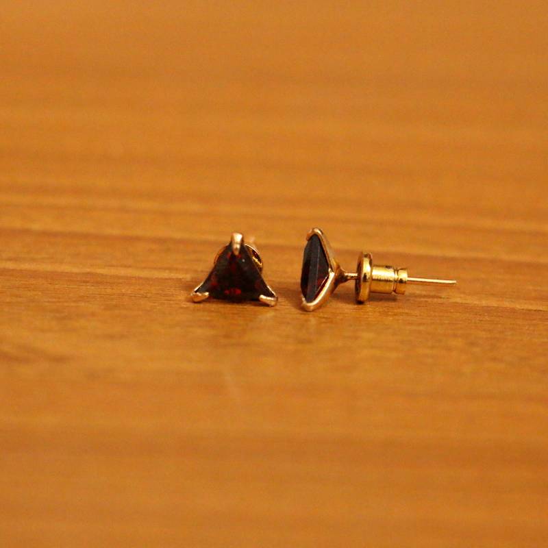 Garnet Colour Triangle Shaped Gold Plated Studs