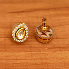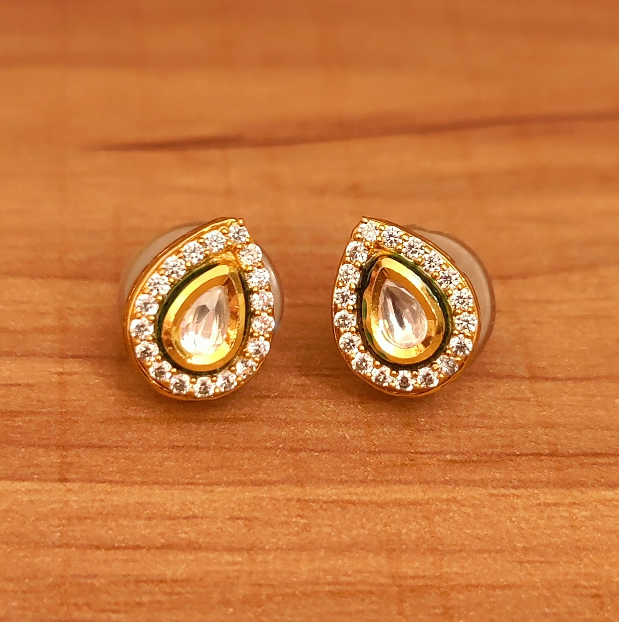 These beautiful studs are handcrafted in brass alloy with imitation cz stone and kundan with meenakari work of very fine quality. these artistic yet modern earrings are plated with high quality gold rhodium. the earrings are very light in weight.