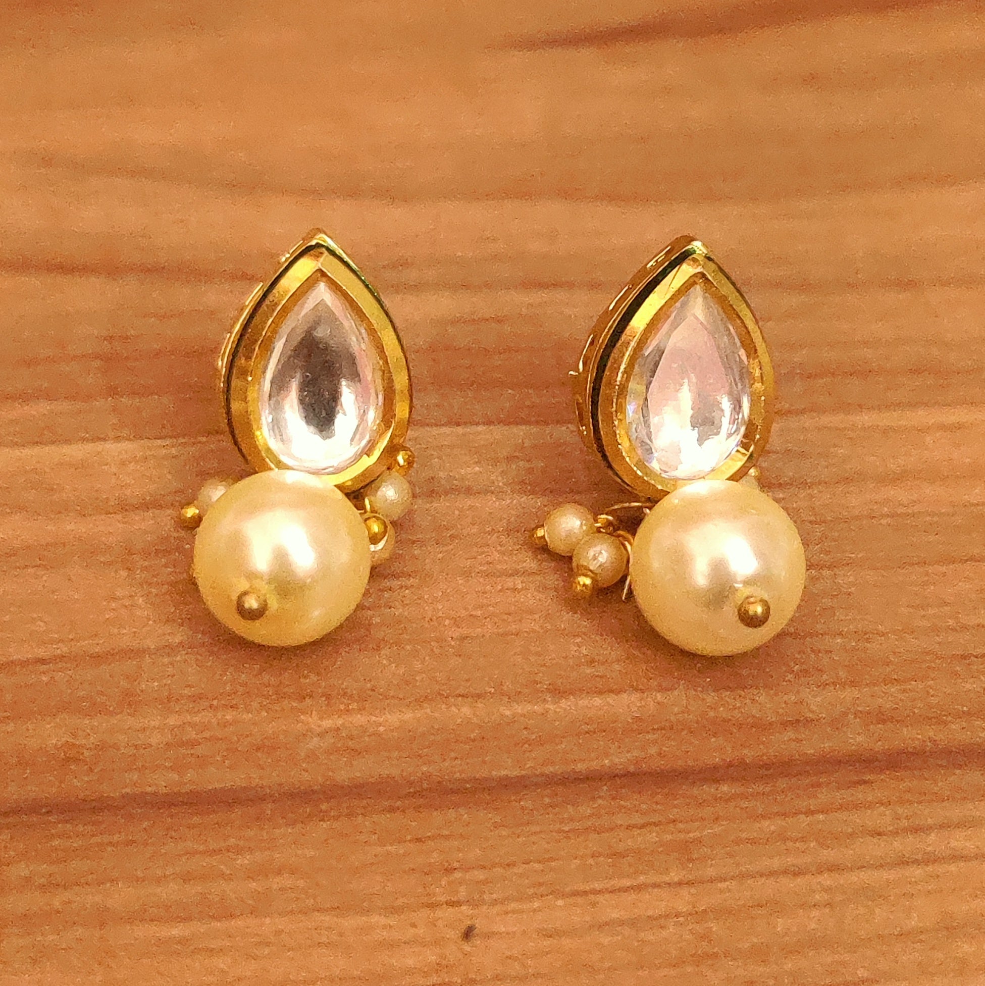 These beautiful studs are handcrafted in brass alloy with imitation pearls & kundan with meenakari work of very fine quality. these artistic yet modern earrings are plated with high quality gold rhodium. the earrings are very light in weight.