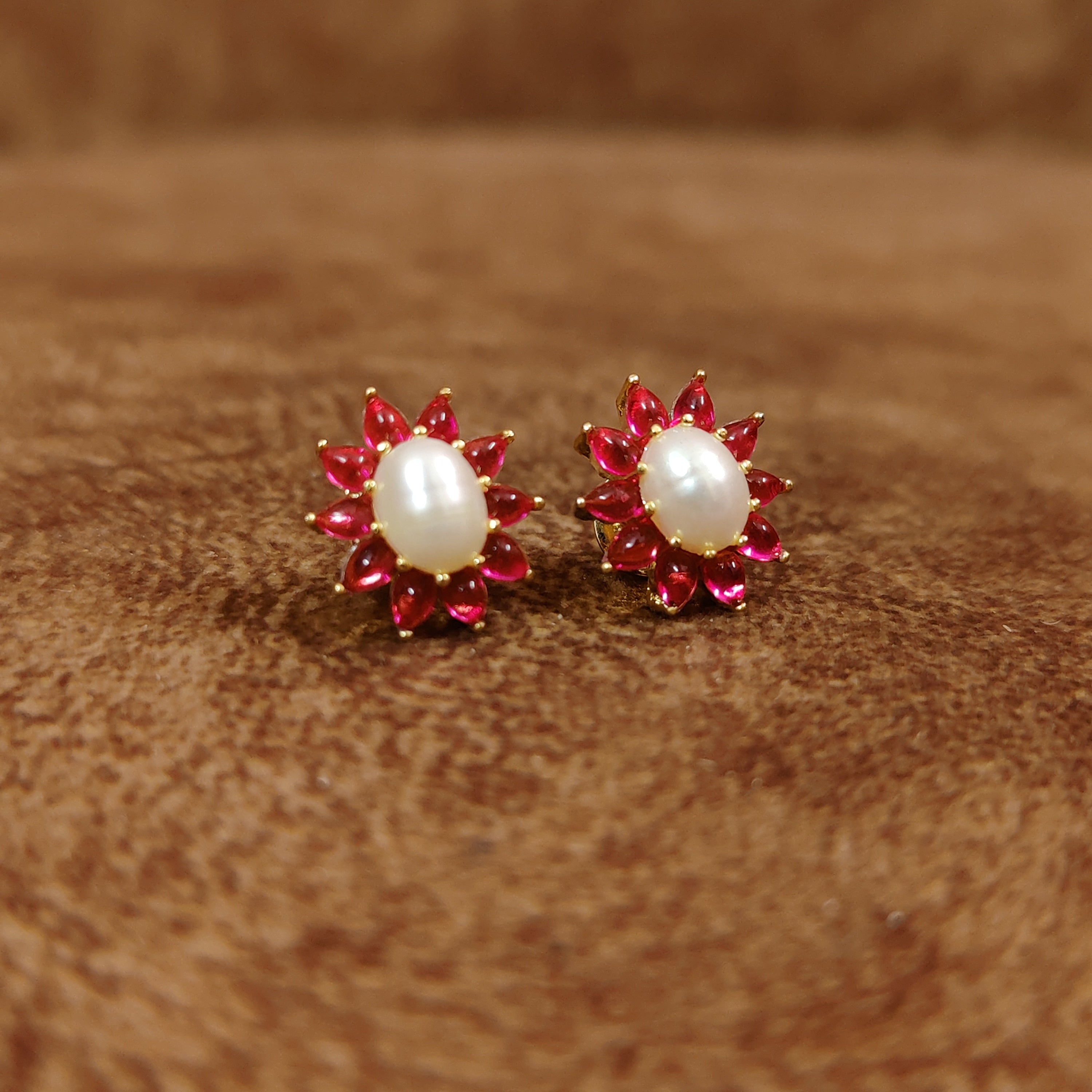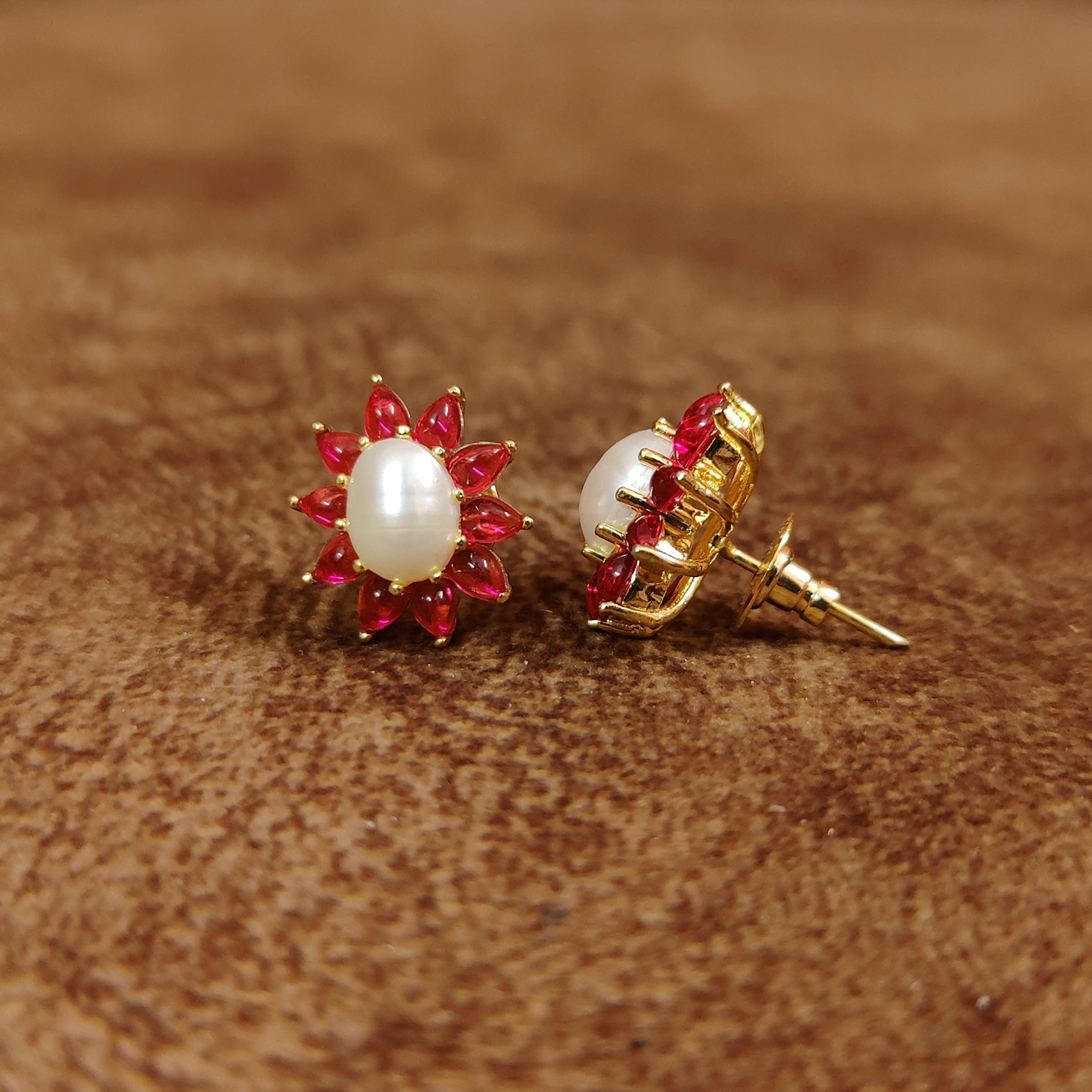 PINK CABACHON PEARL GOLD PLATED STUDS