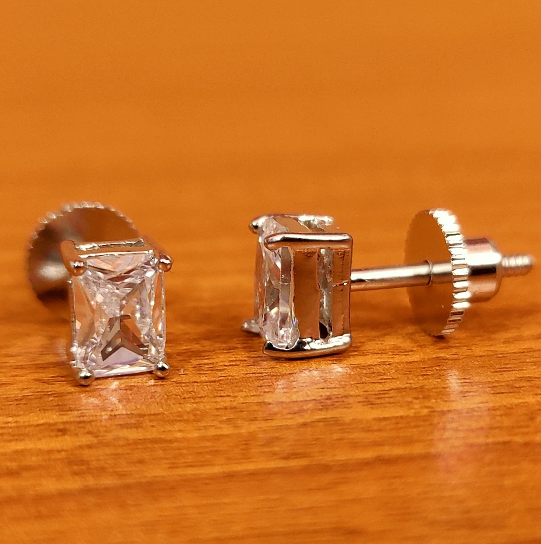 These beautiful rectengle shape studs are handcrafted in brass alloy with imitation solitare stone work of very fine quality. these artistic yet modern earrings are plated with high quality gold rhodium. the earrings are very light in weight.