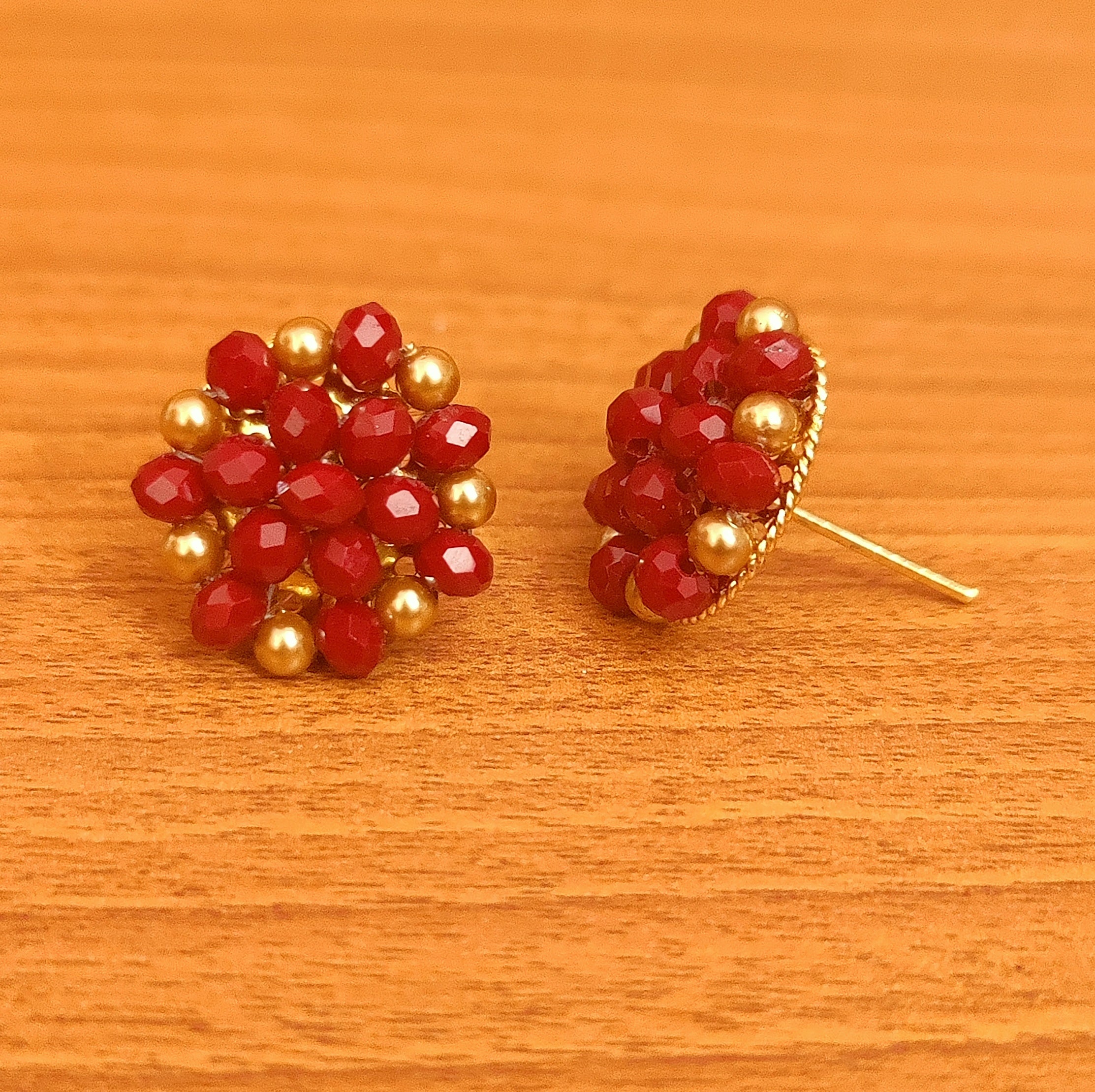 These beautiful earrings are handcrafted in copper alloy with imitation beaded & polki work of very fine quality. these earrings are coated with 18 kt gold polish which give them a unique look . an absolutely stunning piece to own and are very light in weight.