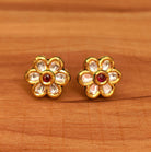 RUBY KUNDAN POLKI GOLD PALTED STUDS