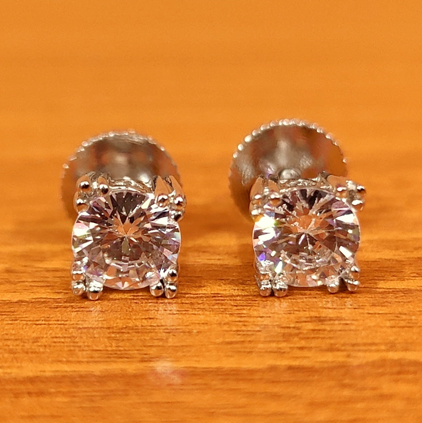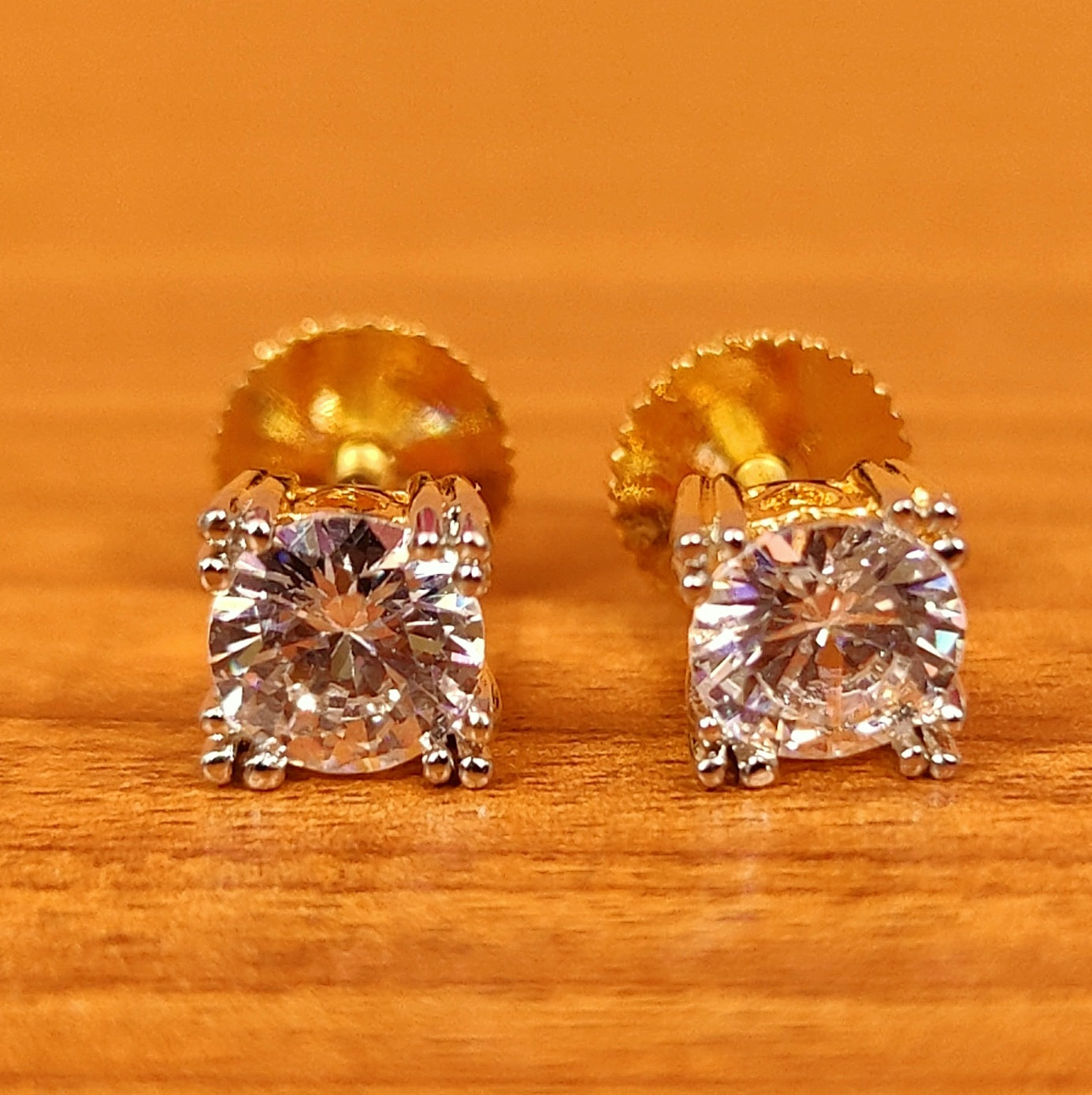 These beautiful single stone studs are handcrafted in brass alloy with imitation solitare stone work of very fine quality. these artistic yet modern earrings are plated with high quality white gold rhodium. the earrings are very light in weight.