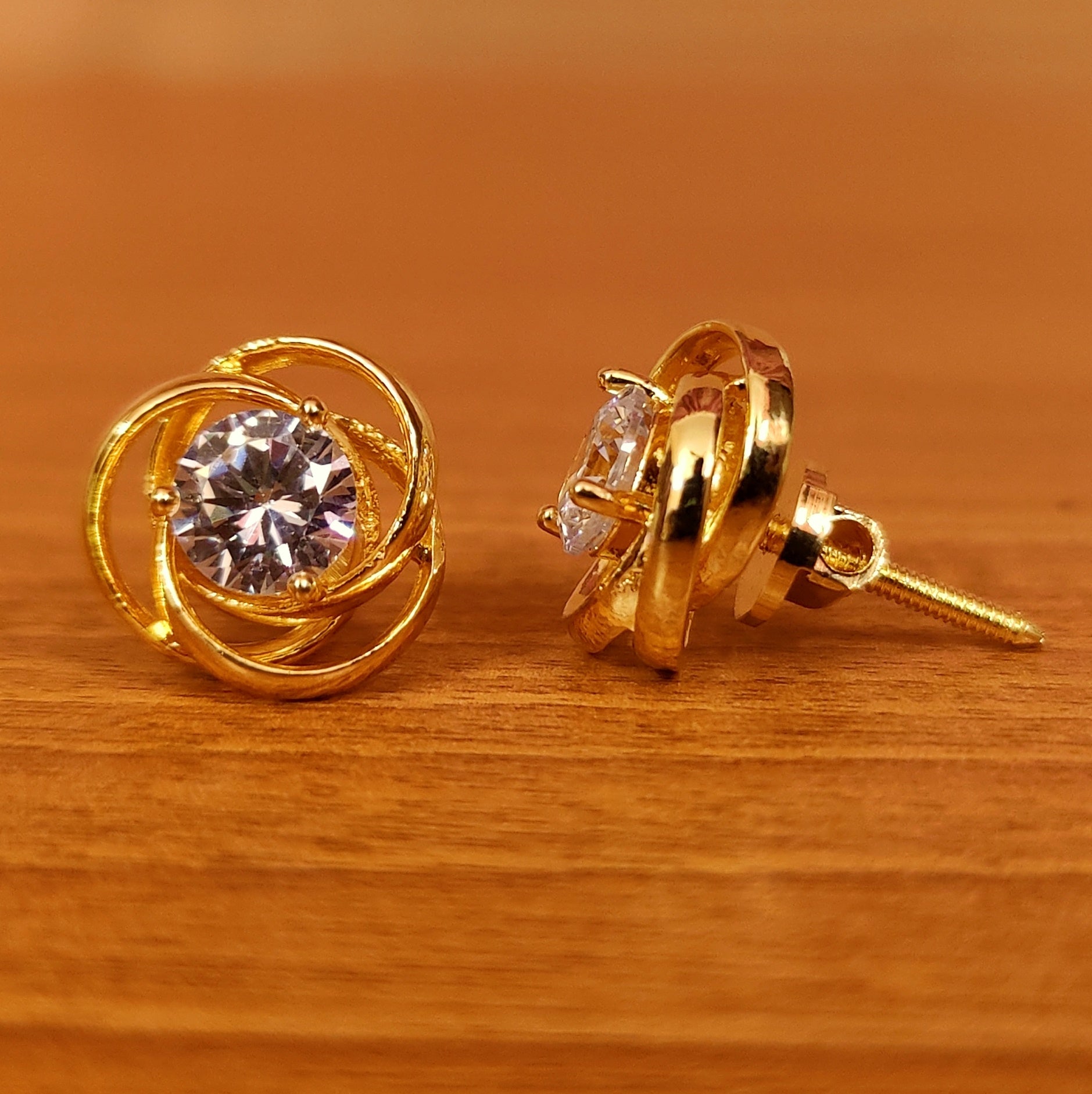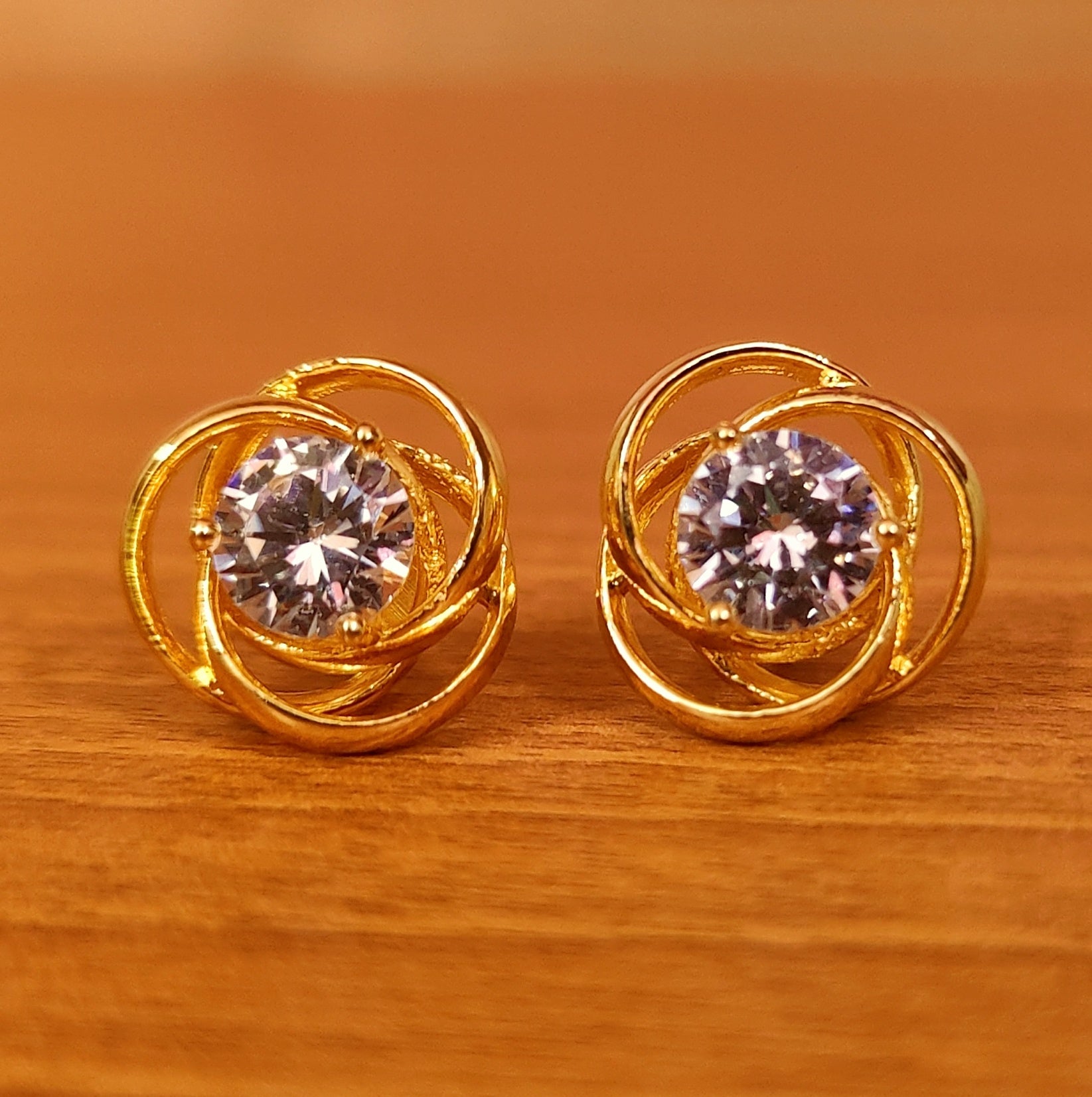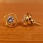 These beautiful diamond look studs are handcrafted in silver alloy with imitation signity cz stones of fine quality. These artistic yet modern earrings are plated with fine nickle free gold look rhodium to avoid any allergies to the skin.
