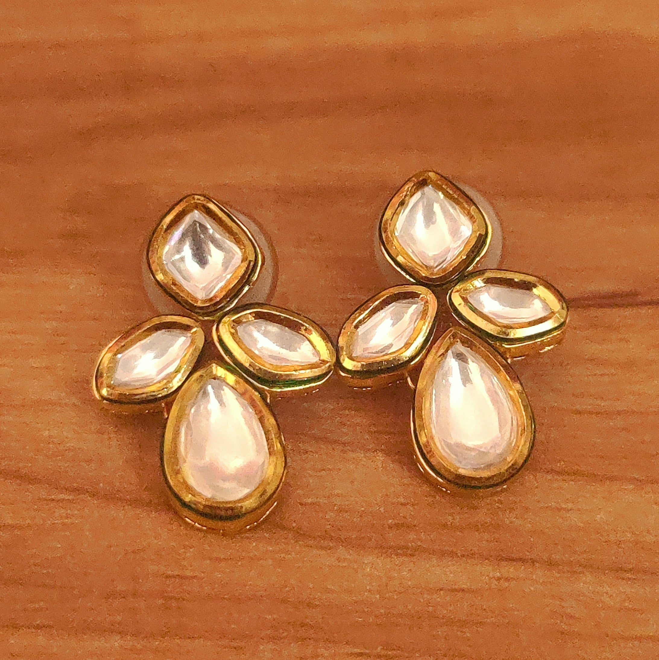 UNCUT KUNDAN POLKI PEAR SHAPED EARRINGS