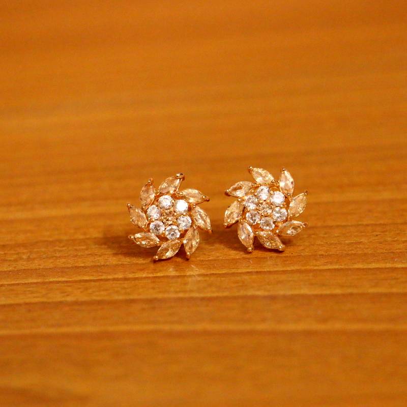 These Studs Are Handcrafted In Silver Alloy With Imitation American Diamond Of Very Fine Quality. These Simple Flower Pattern Earrings Are Plated With Fine Quality Gold Rhodium. The Earrings Are Very Attractive And Light In Weight.