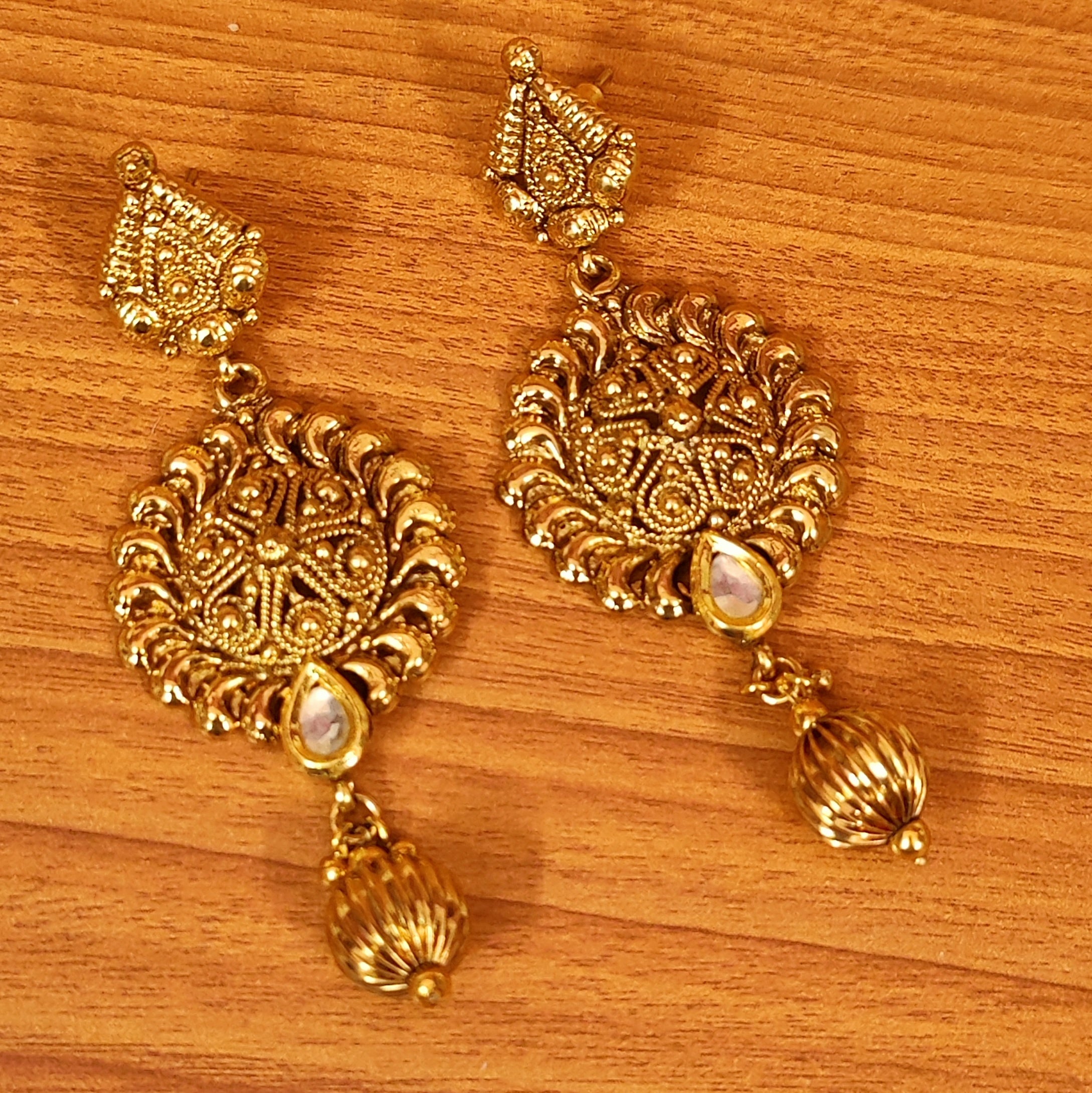 ANTIQUE GOLD LOOK KUNDAN EARRINGS