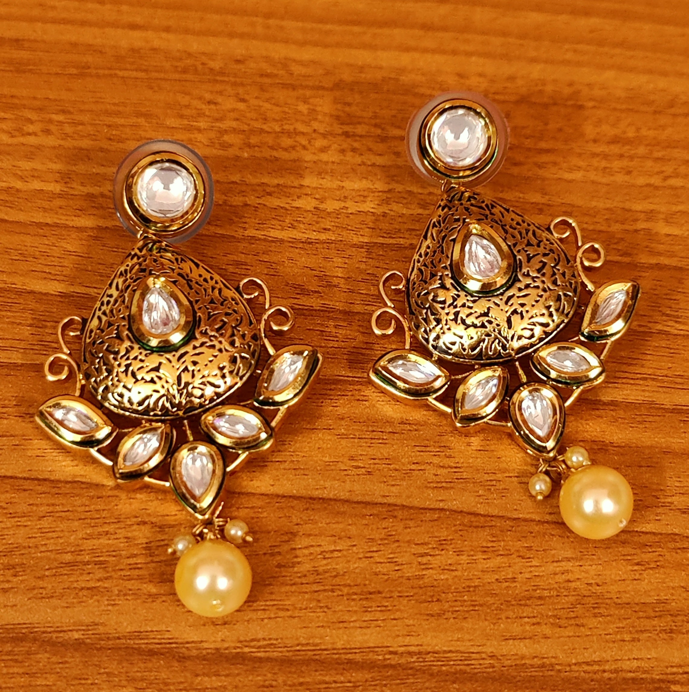 ANTIQUE KUNDAN POLKI GOLD LOOK EARRINGS