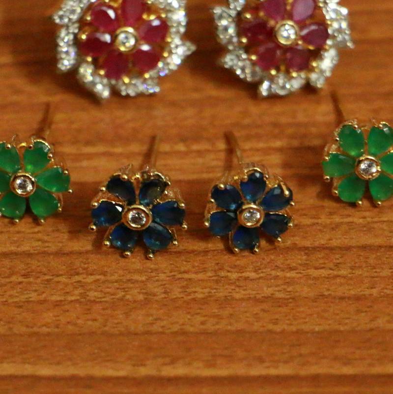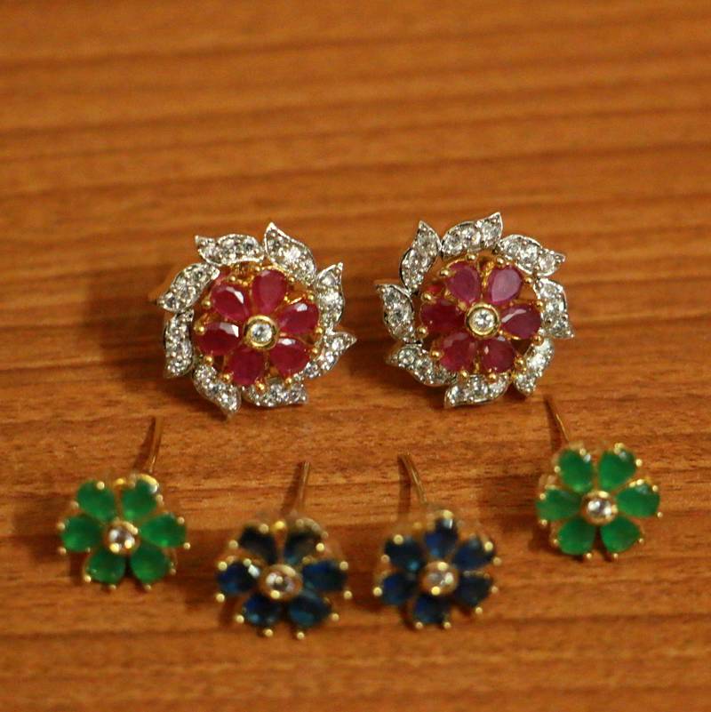 These changeble diamond look studs are handcrafted in silver alloy with imitation ruby colour quartz & cz stones of very fine quality. These earrings are plated in 18kt gold rhodium plating which gives the design a real jewelry look .