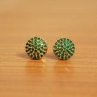 These diamond look studs are handcrafted in silver alloy with imitation emerald colour stones of very fine quality. These earrings are plated in 18kt gold rhodium plating which gives the design a real jewelry look , these earrings are very light in weight.