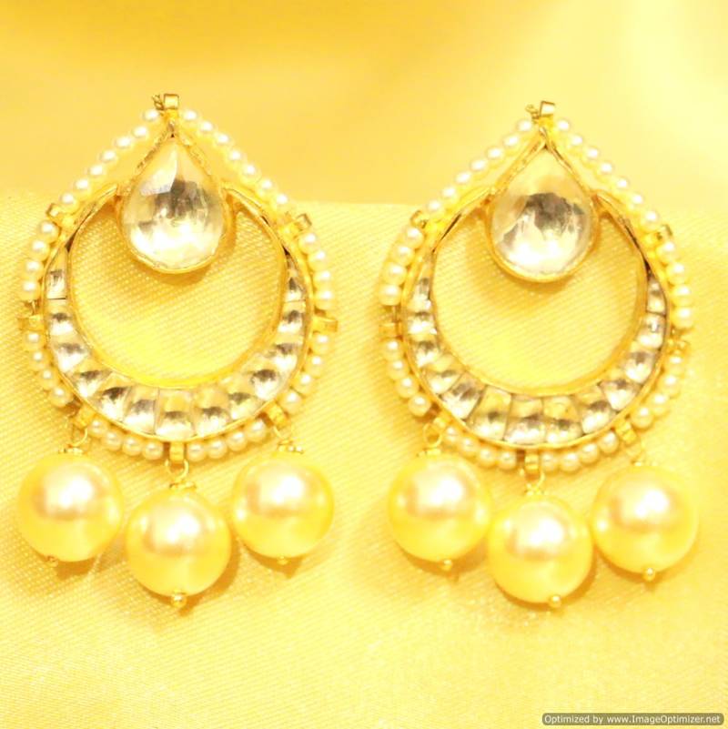 These beautiful earrings are handcrafted in silver alloy with imitation zircon,pearls & kundan of very fine quality.These earrings are coated with 18 kt gold polish which give them a unique look . An absolutely stunning piece to own and are very light in weight.