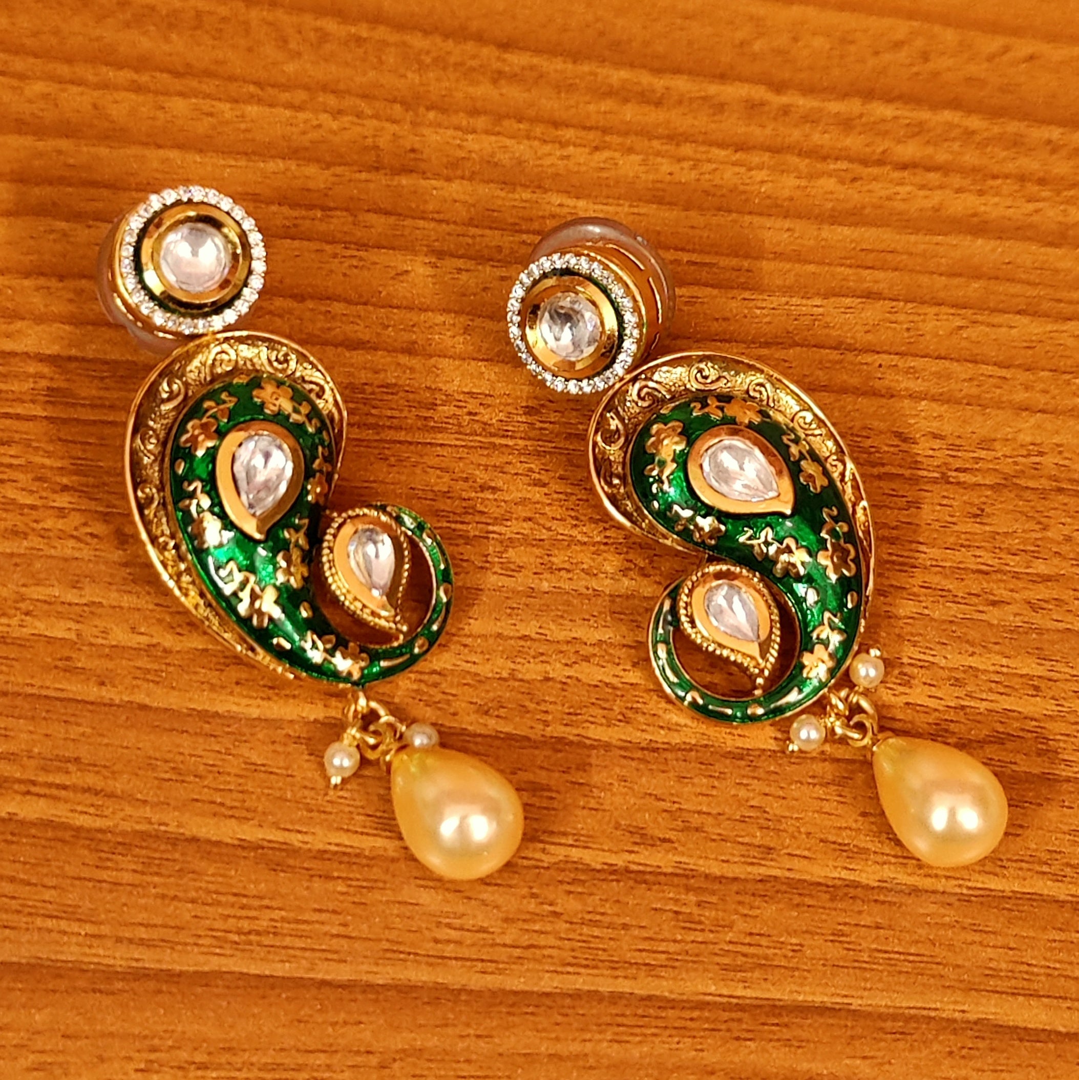 GREEN MEENAKARI KUNDAN & CZ EARRINGS