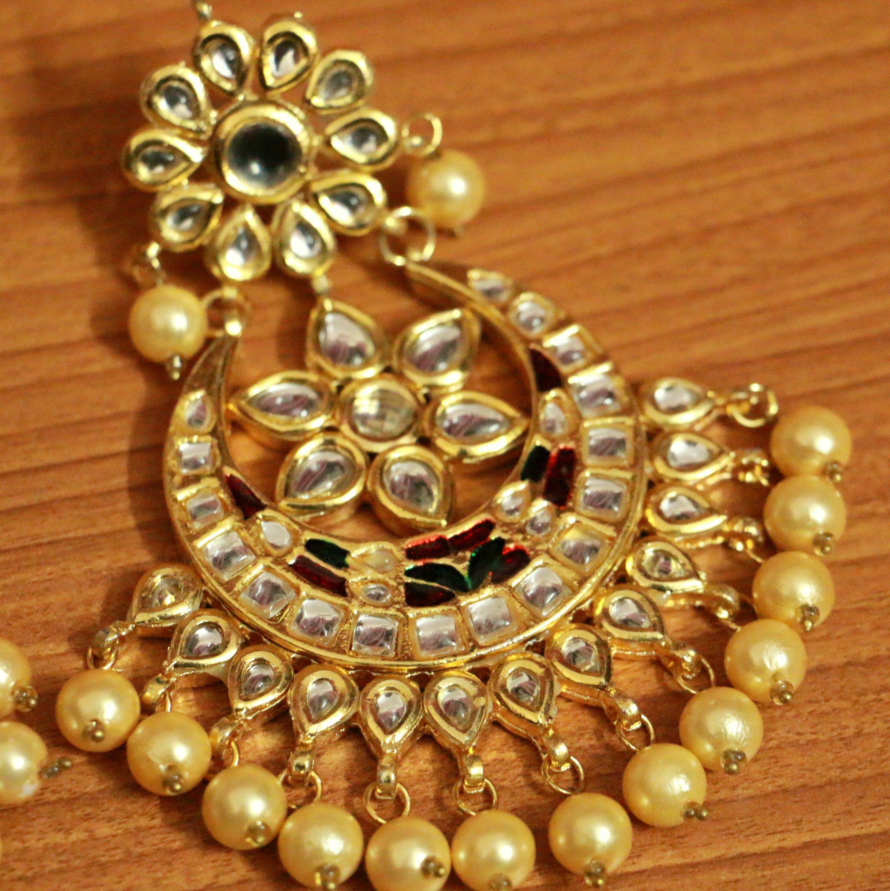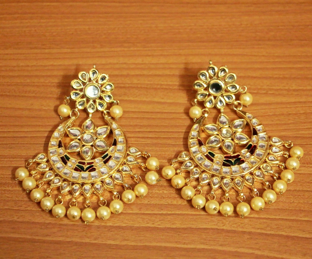 Kundan Meenakari Pearl Chaand Baali Earrings