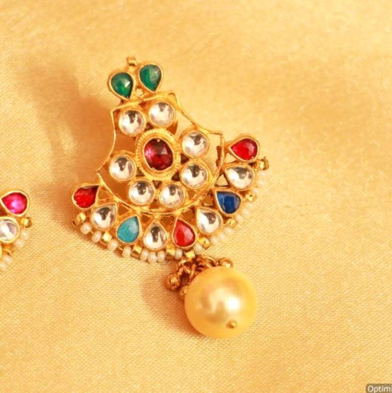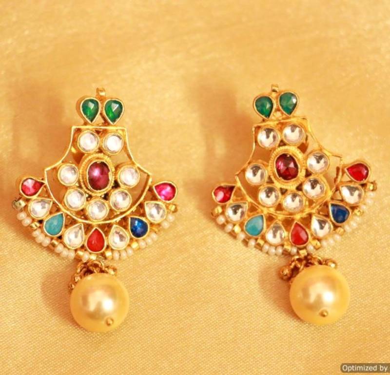 These beautiful navratan earrings are handcrafted in silver alloy with imitation kundan & pearl of very fine quality. These earrings are coated with 18 kt gold polish which give them a unique look . An absolutely stunning piece to own and are very light in weight.