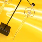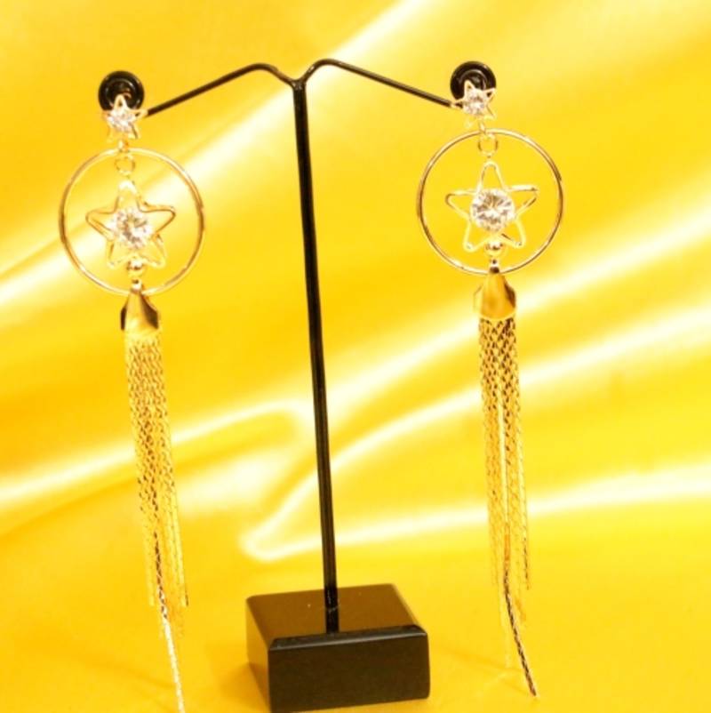 These earrings are handcrafted in silver alloy with fine golden chains dangling at the bottom of the earrings and american diamond studded at the top and middle . These earrings are coated with gold polish which gives them a unique look .