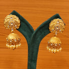 These kundan polki matt gold jhumkas are handcrafted in silver and brass alloy with imitation pearls & kundan polki stone of very fine quality. These party wear jhumkas are plated with real 18kt fine nickel free matt gold rhodium to avoid any allergies to the skin.