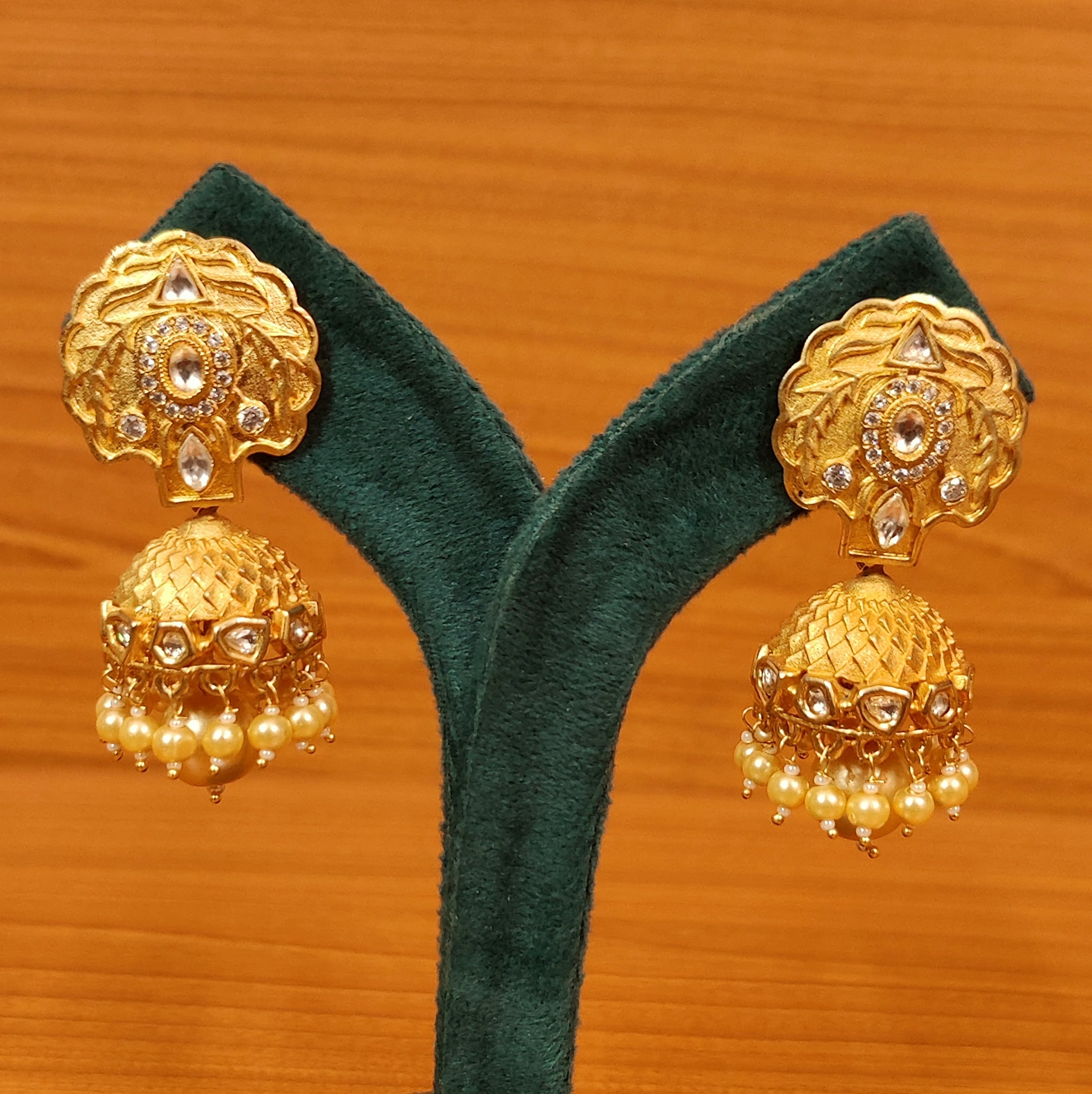 MATT GOLD LOOK UNCUT KUNDAN POLKI & PEARL JHUMKA'S