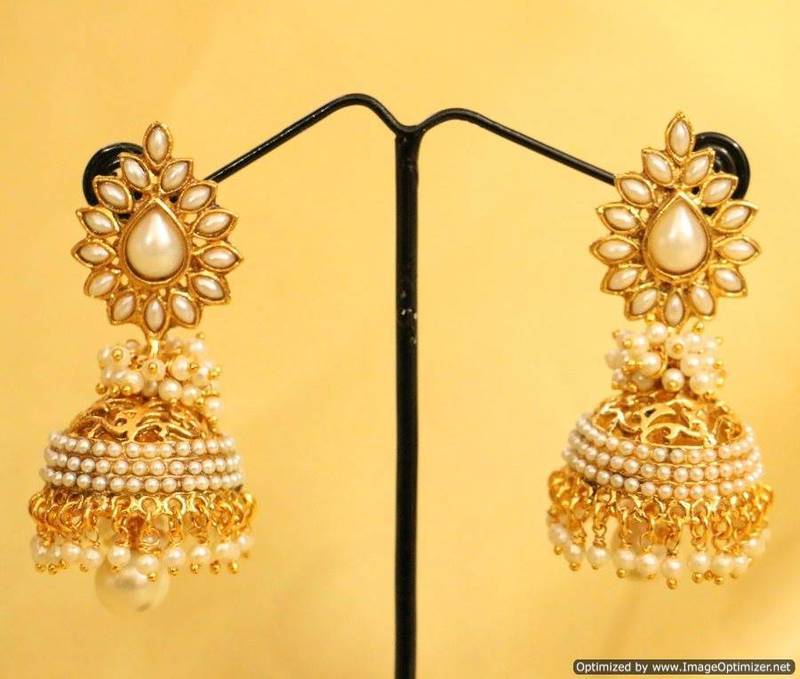 These beautiful Earrings are handcrafted in COPPER alloy with imitation PEARL & ZIRCON of very fine quality and semi precious stones . These earrings are coated with 18 kt gold polish which give them a unique look . An absolutely stunning piece to own and are very light in weight.