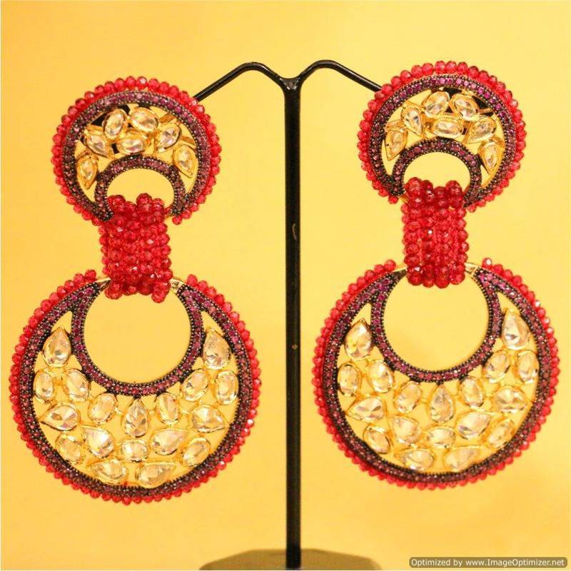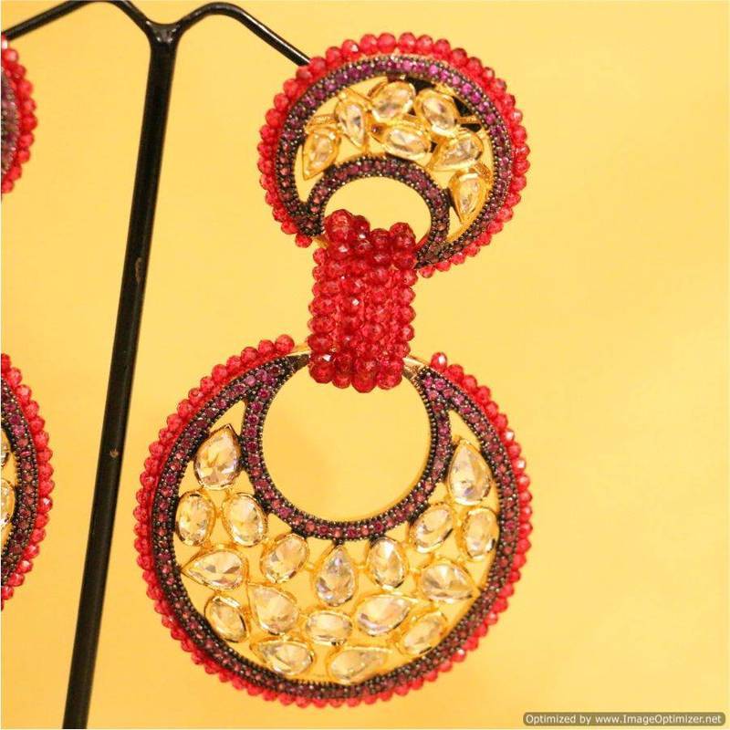 These beautiful Earrings are handcrafted in silver alloy with imitation ruby & semi precious american diamond of fine quality . These earrings are coated with 18 kt gold polish which give them a unique look . An absolutely stunning piece to own and are very light in weight.