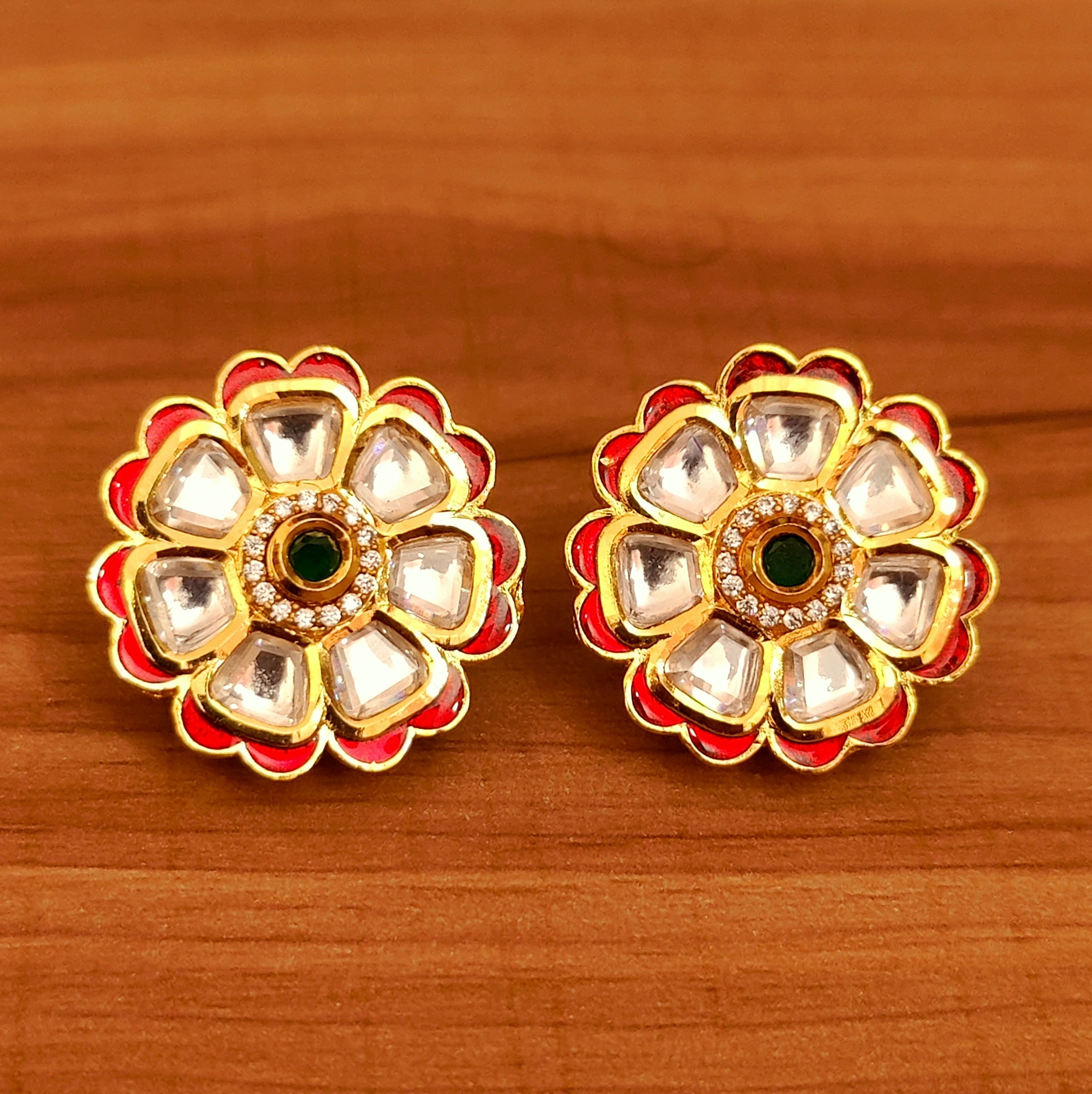 RED MEENAKARI KUNDAN POLKI FLOWER PATTER BIG STUDS