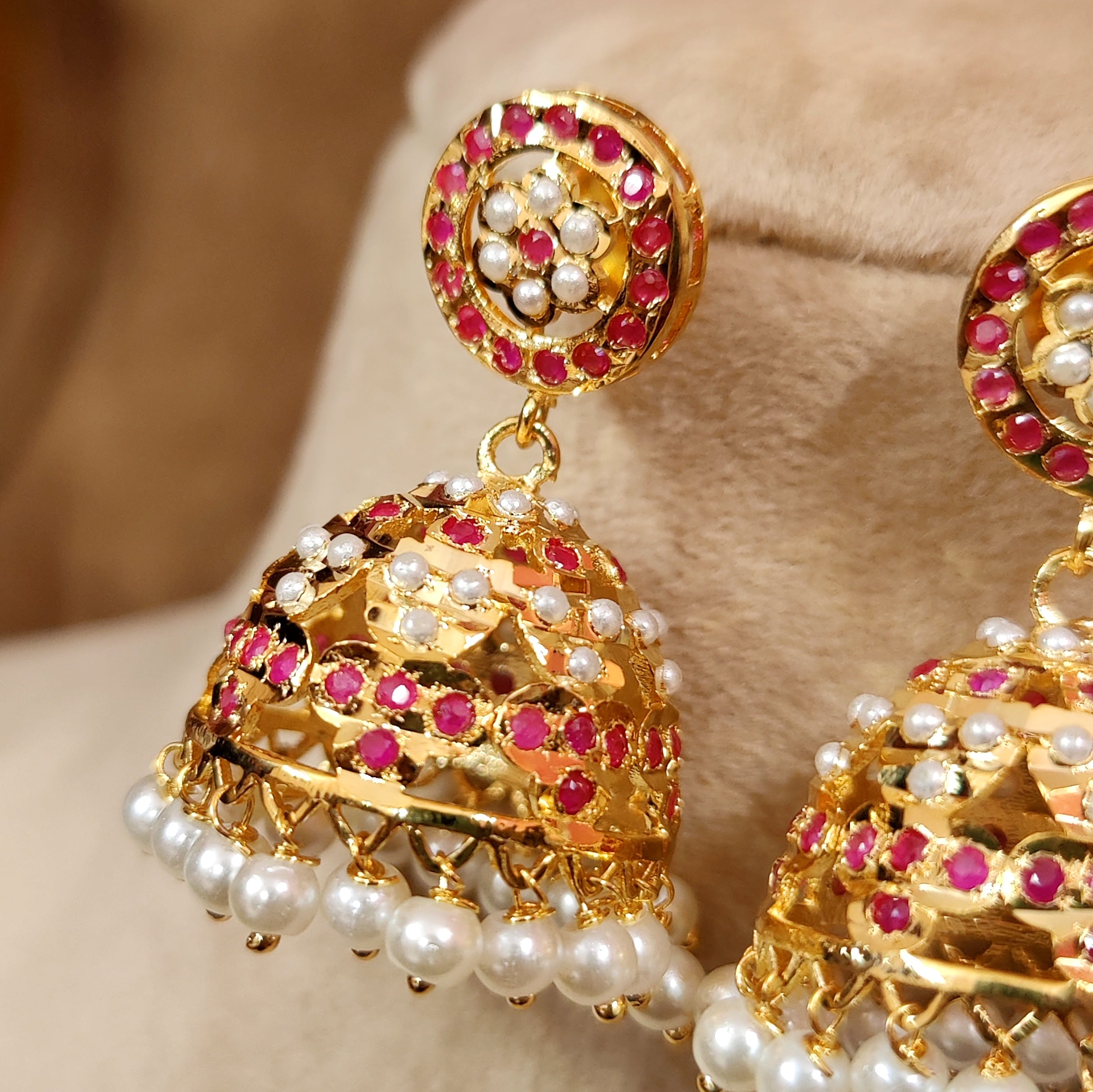 RUBY & PEARL GOLD LOOK JADAU JHUMKA'S