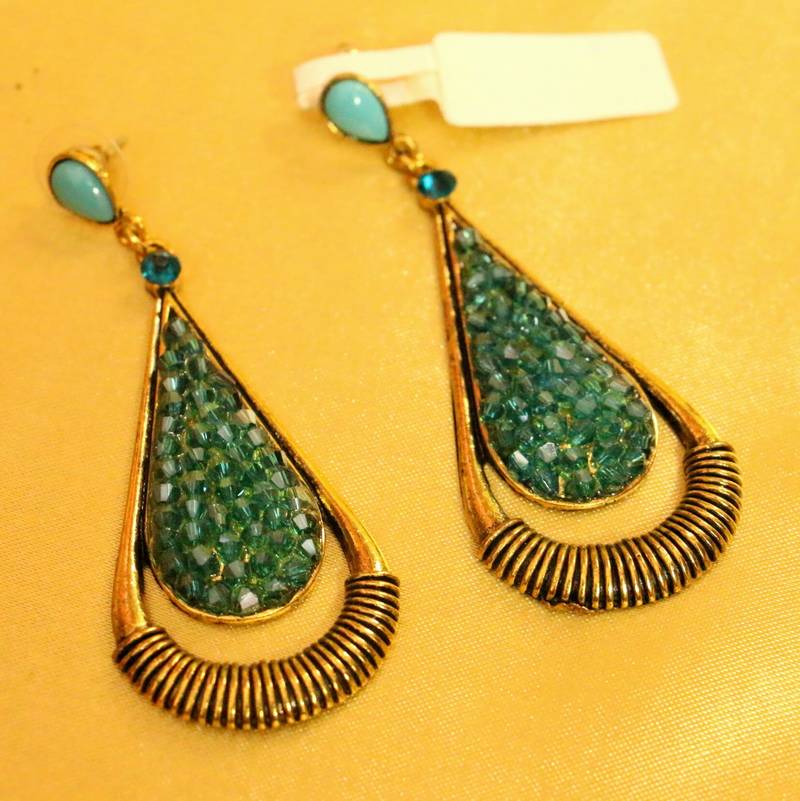 Turquoise Colour Gold Look Antique Fashion Earrings