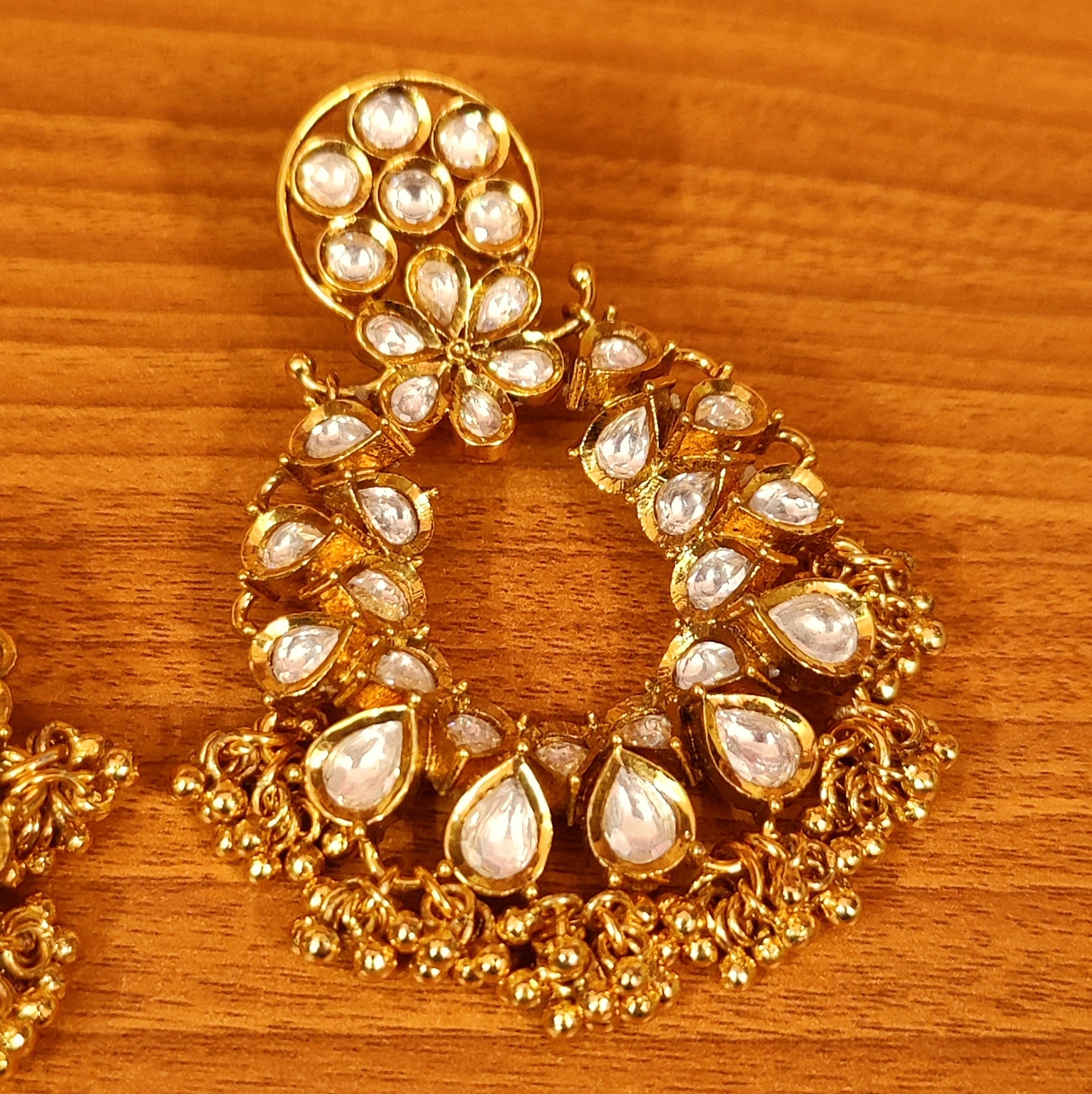 ANTIQUE KUNDAN POLKI GOLD LOOK EARRINGS