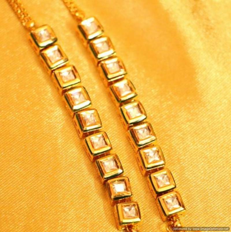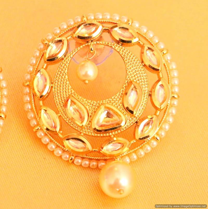 ANTIQUE GOLD PLATED POLKI STUDDED CHAANDBAALI